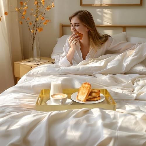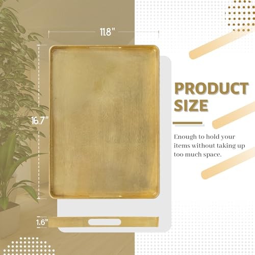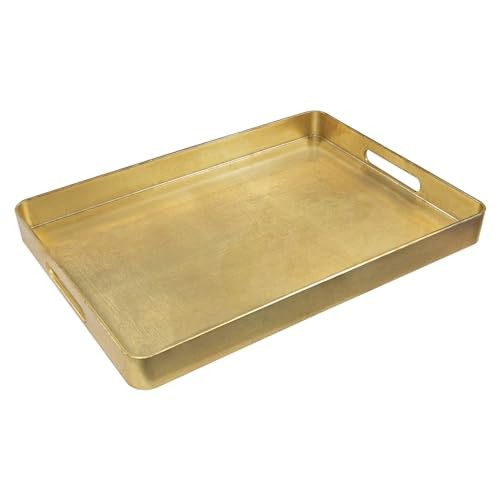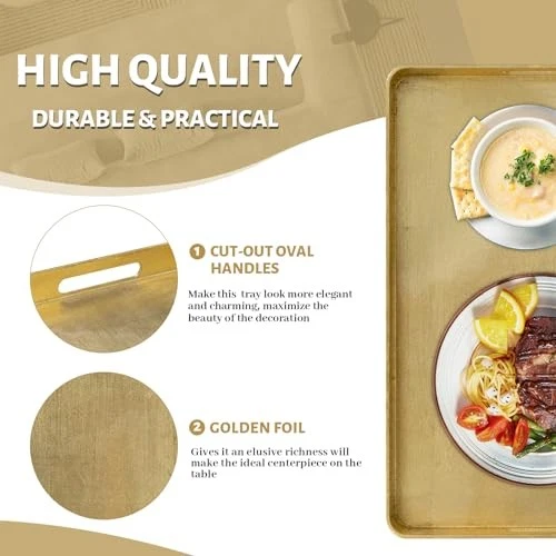 Elegant Gold Foil Serving Tray with Handles 16.7x11.8x1.6 Inches