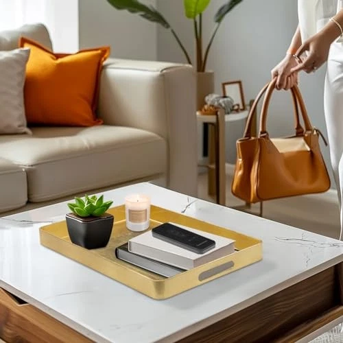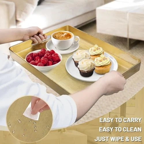 Item Width: 1 Number of Items: 1 Product Care Instructions: Wipe With Damp Cloth Material: Polypropylene, Melamine, Plastic Item Height: 1 EAN: Does Not Apply Product Dimensions: 16.7"L x 11.8"W x 1.6"H Occasion: Wedding, Anniversary, Birthday Item Weight: 2.75 pounds Brand: Does Not Apply Is Oven Safe: No Type: Does Not Apply Date First Available: March 27, 2024 Shape: Rectangular Finish Type: Gold Leaf" or "Gold Foil Size: 16.7" x 11.8" x 1.6" Item Length: 1 Special Feature: Cutout handles, surrounding tray lips Pattern: Solid gtin13: Does Not Apply Style: Modern Manufacturer: Does Not Apply Is Dishwasher Safe: No MPN: Does Not Apply Color: Gold UPC: Does Not Apply Tray Type: Decorative Tray Customer Reviews: 4.6 out of 5 stars