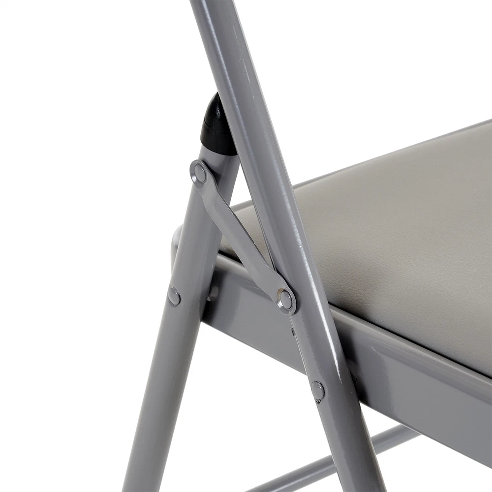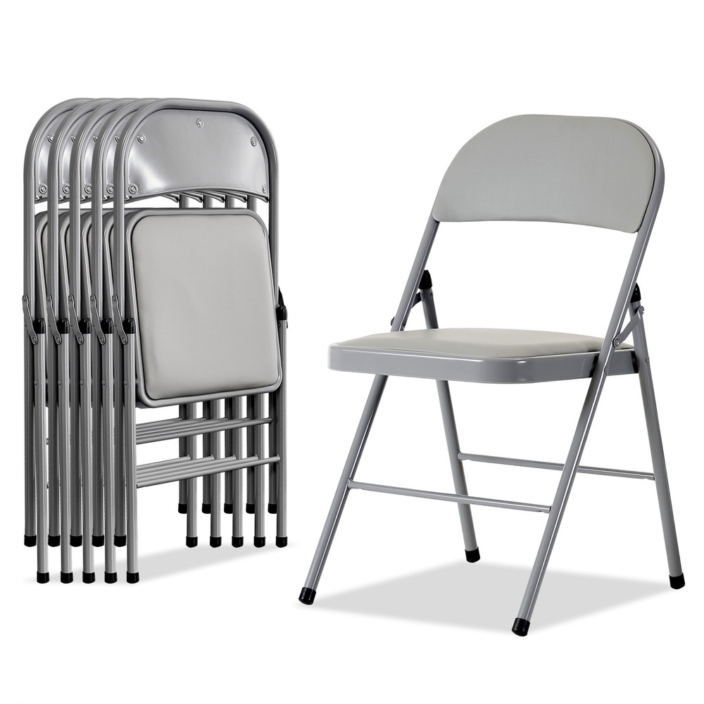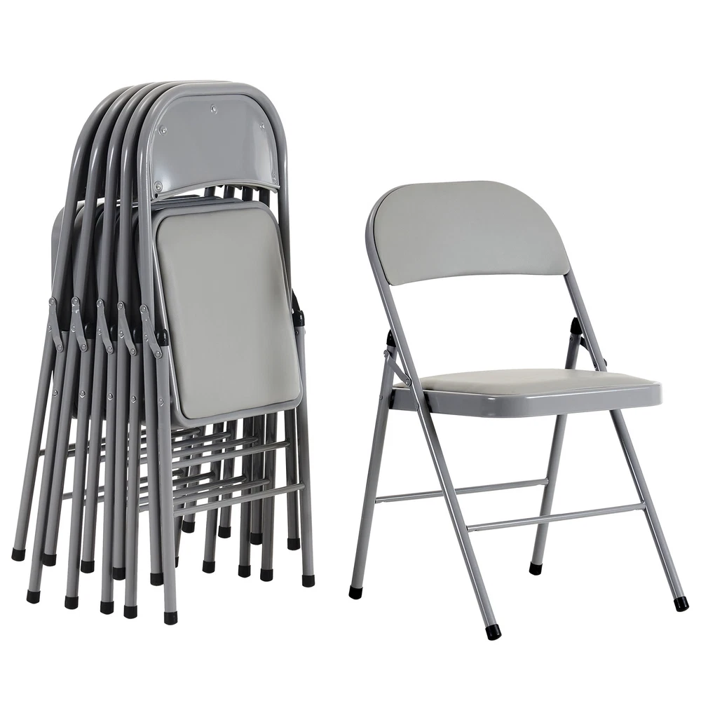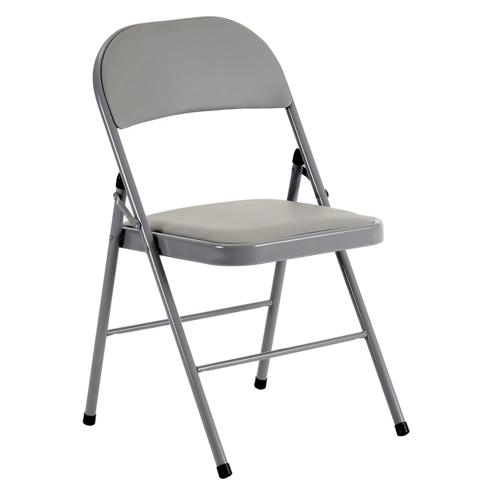 Introductions: This simple style chair combined steel and PVC is suitable for dining room, living room, reception room, exhibition and other places. Sponge filled cushions and backrest give you a more comfortable experience. Sturdy steel frame, two cross - supporting structure can improve the stability of the chair, which makes the chair durable. Steel folding chairs are essential for entertaining guests at large games, parties or events. And they are the best choice when you need additional seats. After use, folding chairs are folded and compact for easy folding and storage. The chairs have smooth surfaces, which is easy to clean. The plastic tube sleeves on chair legs can effectively your floor and prevent scratching. Features: 1. Sturdy and durable steel frame with weight capacity of 150KG 2. Comfortable and soft PVC cushion and backrest, filled with sponge 3. Chairs are easy to carry, foldable and compact, convenient for transportation and storage 4. Plastic tube sleeves can your floor and prevent it from scratching 5. If you have any questions or worries about your order, please keep in with us and we will provide you with timely and satisfactory solutions Specifications: 1. Color: Gray 2. Dimensions:(15.75 x 17.72 x 30.71)”/ (40 x 45 x 78)cm(L x W x H) 3. Seat Dimensions: (15.75 x 15.75)" / (40 x 40)cm (L x W) 4. Backrest Dimensions: (17.32 x 7.09)" / (44 x 18)cm (L x W) 5. Material: Iron Tube & PVC 6. Weight Capacity: 330lbs / 150kg 7. Each Chair Weight: 8.38lbs / 3.8kg Package Includes: 6 x Foldable Chairs