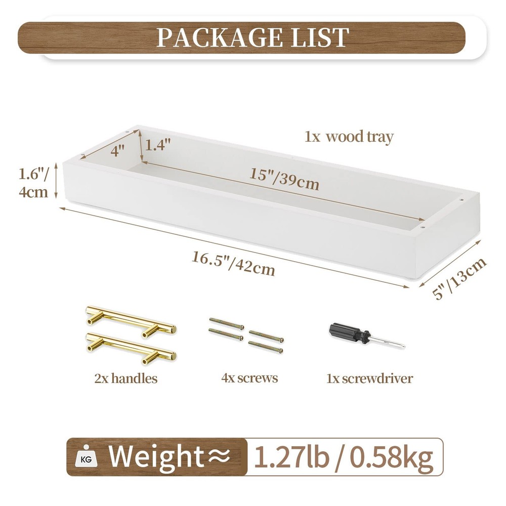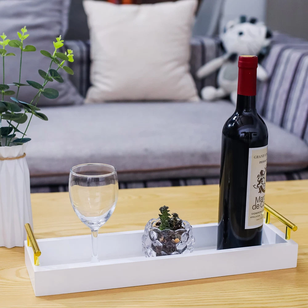 Hanobe Rectangle Long Narrow Tray: Decorative Trays Rectangular Candle Holder Trays for Home Decor White Centerpiece Tray Decor Serving Tray with Gold Handles for Dining Table Coffee Bar Living Room HIGH QUALITY - Measures:16.3"x4.8"x1.66", The rectangular storage tray is made of high quality MDF wood material with a navy blue/white /black paint coating for a smooth and glossy surface and polished metal handles to make it easier to serve or pick up items for guests. DECORATIVE - Add your favorite pillar candles to create a unique candle holder tray or add orbs to make an interesting centerpiece for your dining table. Or place vases with flowers, rocks-capes, small planters and other decorative items to provide eye-catching and stylish accessories for your home. MULTIFUNCTIONAL & OCCASION - The wooden trays for decor not only suit for home centerpiece decor, counter storage box, living room, kitchen, bathroom organizer but also can be used as a coffee, wine, drink long serving tray . It’s also a reliable helper for various occasions like Christmas, birthday, wedding and parties. STYLISH GOLD HANDLES - The long wooden tray added stylish and thick metal gold handles to each side of smal serving tray rectangular to be easily transported with ease when needed, add more thoughtful edge depth is to prevent items from falling off. WARRANTY: Hanobe always put customer satisfaction in our top-priority position and offer 12 months quality assurance and LIFETIME professional customer service. If you have any problems with our products or services, please feel free to contact us anytime, we’ll get back to you within 24 hours. Buy with confidence! Shipping We offer FREE shipping on all orders! We ship within Three business days of payment, usually sooner. We use a selection of shipping services such as UPS, FedEx, USPS etc. We only ship to the lower 48 states, no APO/FPO addresses or PO Boxes allowed. Local pickups and combined shipping options are not provided at this time. International buyers – please note: Import duties, taxes, and charges aren't included in the item price or postage cost. These charges are the buyer's responsibility. Please check with your country's customs office to determine what these additional costs will be prior to bidding or buying. Order Cancellation Policy * Order Cancellation Policy ** You can return a product for up to 30 days from the date you purchased it. 1. The seller reserves the right to cancel the special case only due to eBay cancellation fee. 2. The decision of seller is the final. 3. The seller will respond to the cancellation request within 2 business days. Please wait for the result of cancellation. 4. In case the cancellation is not completed by some reasons, the buyer can follow the options below to get the refund. 4.1 The buyer can reject the item when it arrives. 4.2 The buyer can send the item back to the seller within 30 days If the buyer receives item (USA Shipment ONLY). The seller will provide the FREE return label to the buyer when the buyer opens " Return Item" case on eBay by using the reason as "Change my mind" ONLY. 5. When buyer has placed the order. The order will be processed and completed by automatic warehouse system within 5 minutes. In case that buyer sends the cancellation request after 5 minutes of placing the order, the request will be rejected. **Sending direct message to cancel the order is not allowed for every case.* Return Policy - If buyer would like to return the items for refund or replacement, please CONTACT SELLER to receive the free return label from seller. The refund or replacement will be processed with the tracking number of return label which is provided by seller only. The other ways of return which are not approved by seller will not be processed for the refund or replacement. Return You can return a product for up to 30 days from the date you purchased it. Any product you return must be in the same condition you received it and in the original packaging. Please keep the receipt. Payment We accept payment by any of the following methods: eBay Payments Please pay as soon as possible after winning an auction, as that will allow us to post your item to you sooner! Feedback Customer satisfaction is very important to us. If you have any problem with your order, please contact us and we will do our best to make you satisfied. Contact Us If you have any queries, please contact us via ebay. We usually respond within 24 hours on weekdays. Please visit our eBay store to check out other items for sale! Thank you for shopping at our store.