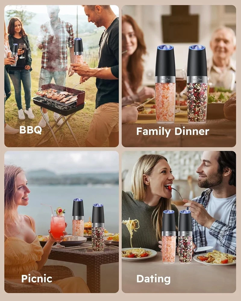 Elegant Rechargeable Salt & Pepper Shakers - Built-In LED Light & XL Capacity ‹ › ‹ › ‹ › ‹ › ‹ › ‹ › ‹ › ‹ › ‹ › ‹ › Elegant Rechargeable Salt & Pepper Shakers Innovative Features: Upgraded USB Rechargeable XL Capacity: Store an abundant 251G/8.9OZ of sea salt and 135G/4.8OZ of white pepper. Comes with a Type-C charging cable for a quick 1-hour charge, grinding at least 80 grams of spices on a full charge. Say goodbye to batteries! Gravity Sensor & Safety Switch: Experience effortless one-handed operation with our gravity sensing feature. The powerful motor grinds spices quickly and effectively, giving you a fine, even grind every time. Adjustable Coarseness: Personalize your grind with an adjustable ceramic grinder knob. Perfect for fine or coarse seasoning, with a clear food-grade acrylic canister for easy monitoring and refilling. Built-In LED Light: Automatically lights up during use, making it easy to see exactly how much seasoning is being dispensed, even in dim lighting. Perfect for creating a warm, romantic ambiance during dinner with loved ones. Why Choose Our Rechargeable Salt & Pepper Shakers? Elevate your culinary experience with our Elegant Rechargeable Salt & Pepper Shakers. Designed for both functionality and aesthetics, these shakers provide a perfect balance of style and innovation. Incorporating modern technology with beautifully crafted design, they make a stunning addition to any kitchen or dining table. The built-in LED light enhances your cooking and dining atmosphere, offering practical visibility while adding a touch of elegance. Whether you’re hosting a formal dinner or enjoying a casual family meal, our salt and pepper grinder set transforms ordinary seasoning into an extraordinary experience. Service Guarantee: Should you encounter any issue, our dedicated support team is available 24/7 to help you troubleshoot, ensuring you can relish effortlessly ground spices every time. Order now to relish in the ultimate seasoning experience! Shipping Free & Fast Shipping - We offer free shipping to most of the USA with a normal delivery time of 3-7 days. However, due to the current situation, additional delivery time (up to 3 weeks) may be required for some items. Alternative Carriers - We may use alternative carriers (e.g. USPS, FedEx, UPS, etc.) to ensure your package arrives safely and on time. Due to the use of multiple carriers, we are unable to provide a tracking number automatically. Handling Time - Orders are processed and shipped within 1-2 business days of receiving cleared payment. Shipping Restrictions - Shipping to Alaska, Hawaii, Puerto Rico, Guam, and other US territories may incur shipping charges or delivery restrictions. Please contact us before ordering, or your order can be refunded/cancelled. State Restrictions - There may be restrictions based on your state of purchase. For example, certain items may not be shipped to California due to state regulations. Contact for Tracking Updates - If you require tracking updates or have any concerns about the delivery of your order, please feel free to contact us, and we will be happy to assist you. Return 30-Day Hassle-Free Returns - We want you to be completely satisfied with your purchase. If you are not, you can return the item within 30 days of receiving it for a full refund or exchange. Easy Return Process - To start a return, simply contact us and we will provide you with a prepaid return shipping label and detailed instructions. Restocking Fee - There are no restocking fees for returns. However, the buyer is responsible for return shipping costs if the return is not due to a seller's error. Refund Processing Time - Refunds will be processed within 5 business days of receiving the returned item in its condition. Payment We accept all major credit cards, PayPal, and Apple Pay for your convenience. Your payment information is secure and encrypted to ensure a safe and seamless transaction. Please complete your payment within 3 days of purchase to avoid any delays in shipping. Feedback Your feedback is extremely important to us. We strive to provide the best products and customer service possible. If you are satisfied with your purchase, please take a moment to leave us a positive review. If you have any concerns or issues with your order, please contact us before leaving negative feedback. We are committed to resolving any problems and ensuring your satisfaction. Contact Us If you have any questions or concerns, please feel free to out to our customer support team. You can contact us through the eBay messaging system. We are available Monday to Friday, 9:00 am to 5:00 pm EST, and we will do our best to respond to your inquiry within 24 hours. Buy it now and enjoy a pleasant shopping experience! Model: Electric Salt and Pepper Grinder Set Unit Quantity: 249.99 grams Material: Acrylic,Stainless Steel Features: Adjustable Coarseness,Automatic,Electric,With Caddy/Holder,Battery Powered Set Includes: Salt & Pepper Grinder Set,Type-C Charging Cable Color: Black Number of Items in Set: 2 Size: Medium Power Source: USB Style: Modern Item Weight: 249.99 grams Item Depth: Less Than 10 in