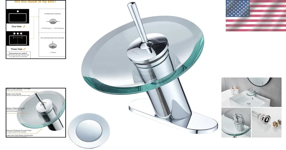 Elegant Single Hole Chrome Bathroom Faucet with Glass Disc and Waterfall Spout ‹ › ‹ › ‹ › ‹ › ‹ › ‹ › ‹ › ‹ › Elegant Single Hole Chrome Bathroom Faucet Discover the perfect fusion of artistry and functionality with our Elegant Single Hole Chrome Bathroom Faucet, featuring a stunning glass disc and captivating waterfall spout. Features: High Quality: Crafted from solid brass with durable stainless steel installation parts, ensuring longevity and reliability. Reflective Finish: The high-end polished chrome finish offers a dazzling mirror-like effect, ideal for contemporary and modern decor. Unique Design: The disk-shaped clear glass rinser introduces a modern twist, making it a standout feature in any bathroom. Easy Installation: Simplify your bathroom upgrade! The waterfall faucet can be installed in just 15 minutes with 5 effortless steps - no plumber needed. Versatile Compatibility: Perfect for various sinks including glass bowl, vanities, ceramic, lavatories, and bathroom basins. Comprehensive Package: Includes a 3 Hole Cover Deck Plate, US standard 3/8" compression threads, 1/2" adapters, pop-up drain and lift rod for a complete installation. Why Choose Our Single Hole Faucet? Elevate your bathroom aesthetic with our waterfall sink faucet. The seamless blend of style and practical installation are designed for those who appreciate the finer things in life. Its polished chrome exterior and modern glass disc not only catch the eye but serve a purpose, enhancing your daily routines with elegance. Feel secure with our 60-day money-back guarantee and a comprehensive 5-year warranty, which ensures that your investment is protected. Upgrade your bathroom today with confidence! Shipping Free & Fast Shipping - We offer free shipping to most of the USA with a normal delivery time of 3-7 days. However, due to the current situation, additional delivery time (up to 3 weeks) may be required for some items. Alternative Carriers - We may use alternative carriers (e.g. USPS, FedEx, UPS, etc.) to ensure your package arrives safely and on time. Due to the use of multiple carriers, we are unable to provide a tracking number automatically. Handling Time - Orders are processed and shipped within 1-2 business days of receiving cleared payment. Shipping Restrictions - Shipping to Alaska, Hawaii, Puerto Rico, Guam, and other US territories may incur shipping charges or delivery restrictions. Please contact us before ordering, or your order can be refunded/cancelled. State Restrictions - There may be restrictions based on your state of purchase. For example, certain items may not be shipped to California due to state regulations. Contact for Tracking Updates - If you require tracking updates or have any concerns about the delivery of your order, please feel free to contact us, and we will be happy to assist you. Return 30-Day Hassle-Free Returns - We want you to be completely satisfied with your purchase. If you are not, you can return the item within 30 days of receiving it for a full refund or exchange. Easy Return Process - To start a return, simply contact us and we will provide you with a prepaid return shipping label and detailed instructions. Restocking Fee - There are no restocking fees for returns. However, the buyer is responsible for return shipping costs if the return is not due to a seller's error. Refund Processing Time - Refunds will be processed within 5 business days of receiving the returned item in its original condition. Payment We accept all major credit cards, PayPal, and Apple Pay for your convenience. Your payment information is secure and encrypted to ensure a safe and seamless transaction. Please complete your payment within 3 days of purchase to avoid any delays in shipping. Feedback Your feedback is extremely important to us. We strive to provide the best products and customer service possible. If you are satisfied with your purchase, please take a moment to leave us a positive review. If you have any concerns or issues with your order, please contact us before leaving negative feedback. We are committed to resolving any problems and ensuring your satisfaction. Contact Us If you have any questions or concerns, please feel free to reach out to our customer support team. You can contact us through the eBay messaging system. We are available Monday to Friday, 9:00 am to 5:00 pm EST, and we will do our best to respond to your inquiry within 24 hours. Buy it now and enjoy a pleasant shopping experience! UPC: Not Set Item Weight: 1.52 kg Model: Not Set Unit Quantity: 1 Material: Brass,Glass Suitable For: Bathroom Sink,Glass Bowl Sink,Vanity Sink,Ceramic Sink,Lavatory,Basin Features: Water Saving System,Pop Up Drain,Lead Free Labels & Certifications: Not Set Room: Bathroom Items Included: 3 Hole Cover Deck Plate,Mounting Hardware,Water Supply Lines,Pop Up Drain with Overflow,Installation Guide Brand: Unbranded Number of Faucet Holes: 1 Number of Faucet Handles: 1 Finish: Chrome Color: Polished Chrome Faucet Mounting Type: Deck Mount Type: Bathroom Sink Faucet Shape: Waterfall Handle Type: Lever Item Height: Not Set Item Length: Not Set Item Width: Not Set Faucet Hole Spacing: 1 Hole Installation: Single Hole Spout Height: 3.1 inches Manufacturer Warranty: Not Set MPN: Not Set Manufacturer: Not Set Number in Pack: 1 Product Line: Not Set Style: Modern Country/Region of Manufacture: Not Set Unit Type: Not Set Assembly Required: Not Set