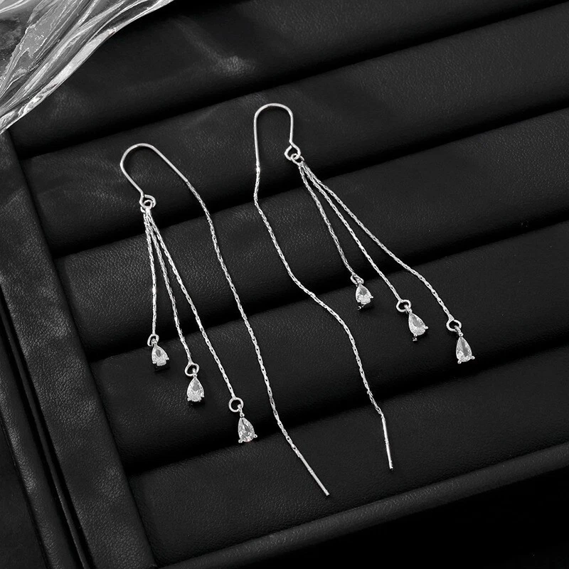925 Sterling Silver Plated Tassel Threader Dangle Drop Earrings Long Chain. 【ELEGANT AND SEXY】How romantic and gorgeous that the bling long tassels are swaying when you move. These earrings can be worn as daily outfits or attending ceremonies, fits for any type of dressing. Make you looks sexy and charming, you’ll be the most attractive lady in the crowd. 【WELL-CRAFTED】total length:90mm/3.5", It is delicate, dainty and well hand-fabricated. 【BEST PRESENT】Perfect for Birthdays, festivals, anniversaries, Christmas, stocking stuffer, perfect for a loved one. 【60 DAYS MONEY BACK GUARANTEE】 Promise 60-day Exchange or Money Back Guarantee. All for your 100% satisfaction and sincerely hope to assist you any time with any questions. Wonderful gift [Shipping:] Item will be shipped within 1 business day after payment clears. Shipping Options: Free US Standard Shipping with a Tracking Number.