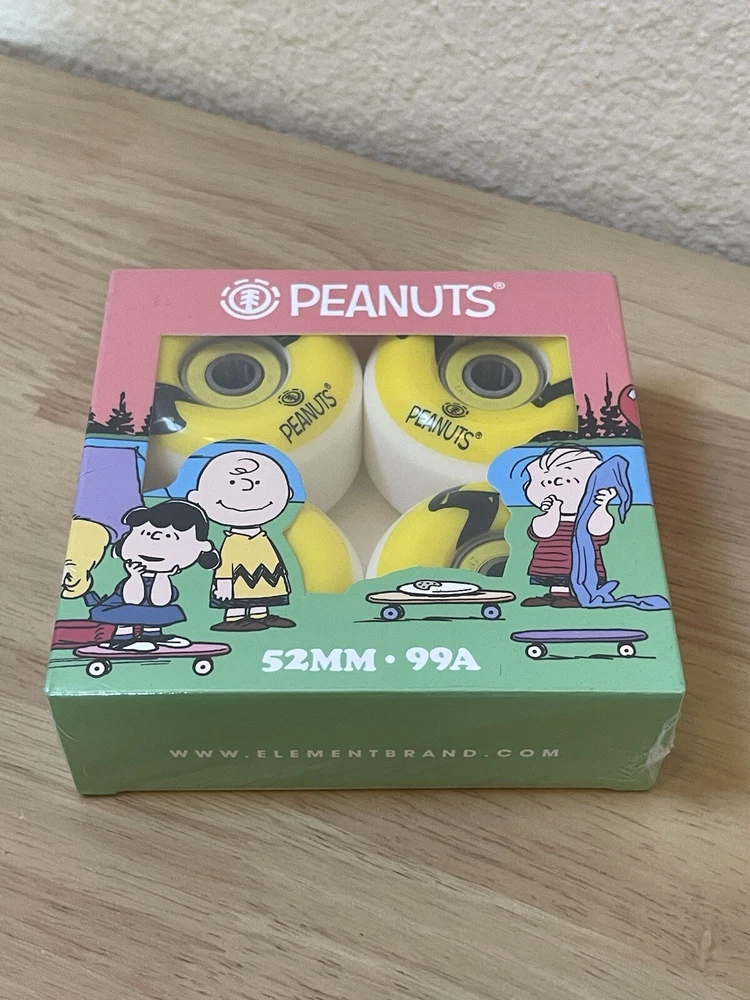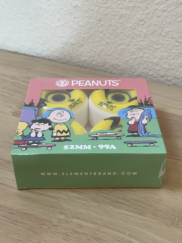 Element X Peanuts Skateboard Skate Wheels & Bearings Charlie Brown 52mm 99A NEW Yes!! These come with bearings This is new and is factory sealed with og shrink Please look at all pics as this is exactly what you will be receiving. Please look at my feedback if you have any doubts about my product or I . I take pride in all i do and sell! Especially in my packing of the item or items you have purchased. Thank you and feel free to message me with anything you have questions on. Im always willing to work with my customers as long as you are reasonable. Im here to help. Thanks Again.