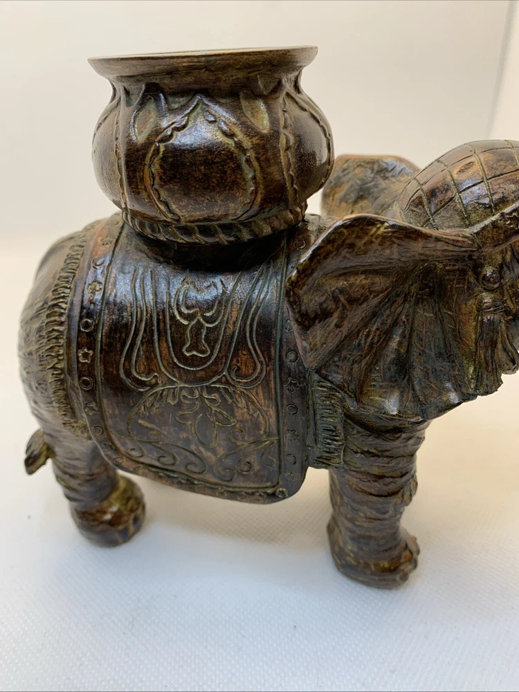 Elephant Candle Holder Beautiful Figurine Bronze Resin 5 in Tall