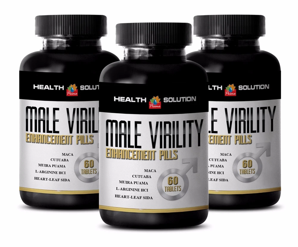 MALE VIRILITY ENHANCEMENT PILLS Dietary Supplement 3 Bottle, 180 Tablets Made in USA VISIT OUR STORE More sexual stamina and control Improved sexual performance Stronger male libido Supports Healthy Testosterone Level Exceptional product with effective natural ingredients Improving Male Virility and Libido! Around the world, there are thousands of men who suffer from sexual health problems. Many aging men experience reductions in testosterone and other, a condition known as andropause. Symptoms of andropause may include reduced sexual response, lack of energy, increased body fat, and mental lethargy. Andropause can be a struggle for many men, it’s frustrating when your body just doesn’t do what it used to. If you want to be more virile and improve your sex life, you will need something more than willpower. There are many different products in the market that seem effective. While some are expensive, others aren’t backed by proper studies or clinical trials. Some products even cause side effects. With all the problems surrounding these products, you need to focus on how these products work and which are proving to work and be the best pills, pumps, or whatever. Buying Male Virility Enhancement will be a good strategy to increase your sex drive and improve your sexual performance. These effective pills can lead to some major improvements in libido. They are affordable, and don’t cause any side effects. Try Our Male Virility Enhancement Pills! Male Virility Enhancement Pills is a completely natural supplement. It’s gentle and safe to use. In addition to this, it contains the perfect mix of amino acids and herbal ingredients. The natural active ingredients in this supplement work together to support male virility. They improve the blood flow to your penis, and provide you with longer power. Most importantly, some ingredients in Male Virility Enhancement Pills can increase your sex drive, and create a youthful sexual response. This provides you with more satisfaction in bed. Due to this, men dealing with different kinds of sexual performance issues are able to take good advantage of this natural solution. It offers excellent results to men who want to get rid of their sexual problems. In case you’re looking for an herbal formula that provides you with a masculine edge, Male Virility Enhancement Pills will be your best choice. Herbal Ingredients of Our Male Virility Enhancement Pills : Most people wonder about the ingredients present in this male enhancement supplement. The ingredients in this one of the best male enhancement pills make it so effective and efficient. Zinc(Oxide): This essential mineral is required for protein synthesis and collagen formation. Sufficient intake and absorption of zinc are needed to maintain a proper concentration of Vitamin E. Zinc plays a vital role in maintaining prostate health, testosterone levels, and maintenance of healthy libido. This mineral helps relax smooth muscles and expand blood vessels. This process makes your body increase blood flow to the genital area and improves sexual perfomance. It is known as an antioxidant and immune boosting supplement, and is most commonly supplemented to reduce the frequency of sickness and to support optimal testosterone levels. Maca Root: Maca is a plant native to the Peruvian highland that started gaining popularity in the US in early 2000-s. This herb is best known for its potential in improving energy levels, vitality, and sexual health. Maca Root is high in protein, natural sugars, iron, potassium, iodine, magnesium, calcium, and fiber and it has many health benefits. Maca root is an herb used to help men improve sexual health. Studies suggest that maca root can enable users to gain full control over the orgasm. Maca root also helps shorten the refractory period to enable users to experience sexual arousal in just minutes following an orgasm. L-Arginine: L-Arginine is considered a semi-essential amino acid that is obtained from the diet and is necessary for protein synthesis in the body. It helps the body get rid of ammonia, helps in making compounds such as creatine, L-glutamate, L-Proline and Glucose. L-Arginine is a pre cursor to nitric oxide, which is a biological gas required for intro cellular communication and blood vessel relaxation. Some evidence shows that arginine may help improve blood flow in the arteries of the heart. This means that extra blood is pumped around the body delivering more oxygen resulting in a stronger immune system, increased healing time, sexual energy and harder power. Tribulus: The active ingredient in tribulus terrestris extract is PROTODIOSCIN, which is a natural precursor of testosterone. Tribulus Terrestris contains steroidal Saponins which is a type of compound and one of the key steroidal saponins in Tribulus plant is Protodioscin. Protodioscin is an active component which is supposed to trigger androgen receptors in cell, making it more receptive to testosterone. Androgen receptors are receptors of Androgens like Testosterone etc and these receptors are present in many of the the tissues in the body. Tribulus can help increase sexual desire in men. Supplements Facts: Niacin 50mg Zinc (as Zinc Oxide) 26mg Maca (tuber) 333mg Catuaba (bark) 83mg Muira Puama (bark) 83mg L-Arginine (HCI) 67mg Heart-Leaf Sida (entire plant) 80mg Barrentwort (aerial) 73mg Tribulus (herb) 67mg Cola (seed) 50mg Oatstraw (grassy stalks) 50mg Stinging Nettle (leaves) 50mg Pumpkin (seed) 50mg Ginger (root) 40mg Cayenne (25,000HU)(fruit) 40mg American Ginseng (root) 33mg Eleuthero (root) 33mg Asian Ginseng (root) 33mg Sarsaparilla (root) 33mg Orchic Substance (bovine) 20mg Boron Citrate 7mg OTHER INGREDIENTS: Cellulose, Gum Arabic (Acacia), Vegetable Stearic, Acid, Modified Cellulose, Silicon Dioxide, Vegetable Magnesium Stearate,and FD&C Blue #2/indigo Carmine Lake. SUGGESTION USE: 2 Tablets daily preferably with a meal or as directed by a healthcare professional. CAUTION: Do not exceed rec