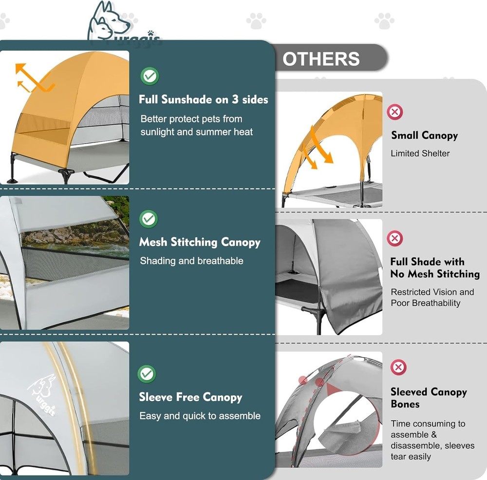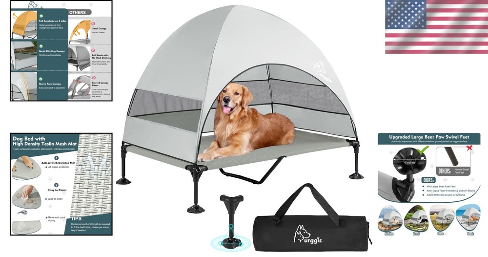 Elevated Dog Bed Canopy Mesh Outdoor Indoor Large Pets Camping Patio ‹ › ‹ › ‹ › ‹ › ‹ › ‹ › ‹ › ‹ › ‹ › Elevated Dog Bed with Canopy Ideal for both Outdoor and Indoor Large Pets Product Features: Super Stable Structure: Our elevated dog bed boasts unique "Bear Paw" or "Lotus Leaf" bed feet, designed to provide a broad 4' contact area with the ground. This innovative bottom structure enhances grip and stability, allowing the bed to stay firmly in place, even on rugged terrains like beaches, hills, and gravel. Spacious UV-Proof Canopy: Enjoy peace of mind with a large waterproof and UV-proof canopy that offers ample shade, protecting your beloved pet from harsh sunlight. Strategically placed mesh panels on three sides ensure optimal air flow while providing an unobstructed view for your furry friend. Elevated Anti-Scratch Bed Mat: Crafted from high-density Teslin, the breathable mat is durable, scratch-resistant, and odorless. This easy-to-clean surface eliminates unwanted pet hair and provides a comfortable, elevated resting spot that keeps pets cool and dry. Quick & Easy Assembly: Spend less time assembling! In just 10 minutes and without the need for tools, you can set up this suspended dog bed. The easy-to-mount canopy design ensures a hassle-free experience for both pets and their parents. Versatile Use: Whether at the beach, during a picnic, while camping, or at home in the yard, this adjustable bed is perfect for various outdoor settings. You can also remove the canopy for an indoor resting space, making it a versatile addition to your pet’s lifestyle. 100% Satisfaction Guarantee: We stand behind our products. If you have any questions or need assistance, our dedicated support team is ready to assist you within 24 hours. Why Choose Our Elevated Dog Bed? Provide your furry companions with the ultimate outdoor experience with our Elevated Dog Bed. This thoughtfully designed product not only ensures comfort and relaxation but also prioritizes safety and health. The unique stability features and breathable materials make it an essential for every pet family. Let your beloved pets enjoy the outdoors in style and comfort - order your Elevated Dog Bed today! Shipping Free & Fast Shipping - We offer free shipping to most of the USA with a normal delivery time of 3-7 days. However, due to the current situation, additional delivery time (up to 3 weeks) may be required for some items. Alternative Carriers - We may use alternative carriers (e.g. USPS, FedEx, UPS, etc.) to ensure your package arrives safely and on time. Due to the use of multiple carriers, we are unable to provide a tracking number automatically. Handling Time - Orders are processed and shipped within 1-2 business days of receiving cleared payment. Shipping Restrictions - Shipping to Alaska, Hawaii, Puerto Rico, Guam, and other US territories may incur shipping charges or delivery restrictions. Please contact us before ordering, or your order can be refunded/cancelled. State Restrictions - There may be restrictions based on your state of purchase. For example, certain items may not be shipped to California due to state regulations. Contact for Tracking Updates - If you require tracking updates or have any concerns about the delivery of your order, please feel free to contact us, and we will be happy to assist you. Return 30-Day Hassle-Free Returns - We want you to be completely satisfied with your purchase. If you are not, you can return the item within 30 days of receiving it for a full refund or exchange. Easy Return Process - To start a return, simply contact us and we will provide you with a prepaid return shipping label and detailed instructions. Restocking Fee - There are no restocking fees for returns. However, the buyer is responsible for return shipping costs if the return is not due to a seller's error. Refund Processing Time - Refunds will be processed within 5 business days of receiving the returned item in its condition. Payment We accept all major credit cards, PayPal, and Apple Pay for your convenience. Your payment information is secure and encrypted to ensure a safe and seamless transaction. Please complete your payment within 3 days of purchase to avoid any delays in shipping. Feedback Your feedback is extremely important to us. We strive to provide the best products and customer service possible. If you are satisfied with your purchase, please take a moment to leave us a positive review. If you have any concerns or issues with your order, please contact us before leaving negative feedback. We are committed to resolving any problems and ensuring your satisfaction. Contact Us If you have any questions or concerns, please feel free to out to our customer support team. You can contact us through the eBay messaging system. We are available Monday to Friday, 9:00 am to 5:00 pm EST, and we will do our best to respond to your inquiry within 24 hours. Buy it now and enjoy a pleasant shopping experience! Unit Quantity: 1.00 count Features: Cooling,Covered,Outdoor,Portable,Scratch-Proof,Waterproof,UV Resistant,Non-Skid Bottom,Weather-Proof,Easy to Assemble,Breathable,Durable,Anti-Scratch,Washable,Lightweight Dog Size: L Type: Elevated Pet Bed Material: Mesh