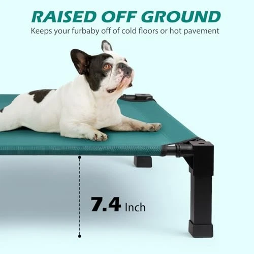 30 Days Return Policy Fast Delivery Trusted seller Elevated Dog Bed, Cooling Raised Pet Cot with Chew Proof Washable Breathable Mesh and Metal Frame, Portable Dog Cot Bed with No-Slip Feet for Outdoor or Indoor Use Product Description Stay Cool and Dry: The dog bed elevates pets more than 8.4 inches off the ground, which allows air to circulate underneath and provides a cooling environment for your pets. Raised dog cot is great for keeping your pet warm in the cooler months and cooler in the warmer months both indoors and outdoors. Premium Fabric Materials: The Textilene dog bed mat allows air to flow, is sturdy and breathable. Taut and springy fabric provides supportive sleep for dogs. Pet hair, dirt, grime won't stick to the tight mesh, simply hose off with water, or wipe down with a wet towel and allow to dry. Sturdy Steel Construction: Powder-coated steel frame is rust-resistant and built to withstand harsh outdoor conditions, it can support the weight of your large-sized dog. Designed for quick removal and installation, make the bed portable and perfect for indoor, outdoor, picnic, camping, training. Enlarged Rubber Feet Pads: The non-slip rubber feet protect floors from scratches and keep the pet bed from sliding when your dog jumps on or off. The non-slip feet provide extra stability during movement, making this ultra-comfortable bed ideal for use on a variety of surfaces. Easy to Install: The cooling dog cot can be installed without the use of any tools, screws and can be installed directly with the plastic connector. It only takes a few minutes of your time, and presto. It's up and ready for your pet to enjoy in. Perfect for any indoor space or outdoor adventure. Shipping Returns Payment Shipping Shipping is FREE to all addresses other than APO/PO boxes in the lower 48 states. All our stock ships from US-based warehouses. Shipped via USPS or UPS (depending on location and package weight) Unless stated otherwise, all orders will ship within 24-72 hours of your payment being processed. Check our feedback to see the great reviews of FAST shipping we offer. Returns As our valued customer, we will do our best to make sure the product you receive arrives to you on time and as expected. If you are not satisfied with your purchase, please contact us within 30 days of receiving your order to process a return. Payment We currently accept payment via eBay managed payments only. Once payment is cleared, we will dispatch your shipment within 1-3 business days. Please refer to the "Shipping" tab for more information regarding shipping speed to your destination.