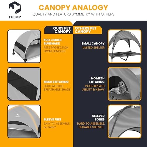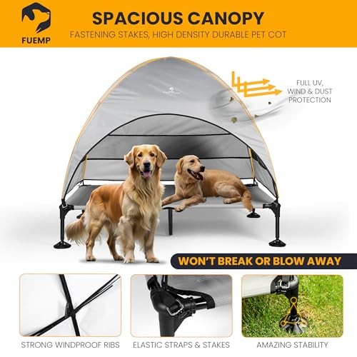 Absolutely love this elevated dog bed! The canopy provides shade, and the sturdy frame keeps my pup cool and comfortable. The included travel bag makes it so easy to take on trips—perfect for outdoor adventures. Super spacious and durable, definitely worth it!