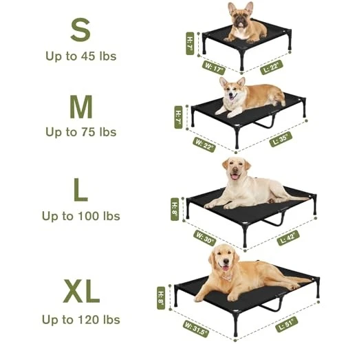 30 Days Return Policy Fast Delivery Trusted seller Elevated Dog Beds Large Sized Dogs, Cooling Raised Pet Cot Beds, Portable Lifted Camping Pet Bed with Washable Mesh, Durable Pets Hammock for Training, Non Slip, Easy to Clean, Black, L Product Description Year-Round Comfort: The elevated dog bed is made of premium Teslin mesh, which is heat-resistant, strong and breathable. Our raised dog bed is designed to keep your pet cool and comfortable. The outdoor dog bed adopts off-ground design to promote airflow, while the breathable mesh fabric ensures quick heat dissipation in summer and insulation from cold, damp ground in winter, so you can use this dog cot in any season. Sturdy & Dependable Support: Designed with a metal frame and Tee-Union structure, the dog cots beds for large dogs are extreme stable and sturdy. In addition, we reinforce the leg thickness of the dog cot bed, so the dog hammock has outstanding stability and high load-bearing capacity than others. Besides, the Teslin mesh prevents scratching and chewing for longer use. The non-slip design provides added safety, making it easy for your dog to climb on and off without worry. Effortless Cleaning: Say goodbye to hassle! Our raised dog beds for large dogs is washable and easy to wipe down or rinse off. You can wash the mesh under running water, a hose, or a damp towel and your cooling dog bed is always clean and ready for use. Quick & Tool-Free Assembly: Our travel dog bed assembles in minutes, the plug-in design makes setup a breeze. Its lightweight design allows you to move it effortlessly between indoor and outdoor spaces, ensuring your dog's comfort wver you go. Indoor & Outdoor Versatility: The 8-inch dog outdoor bed is perfect for indoor, outdoor, picnic, camping, training. With the outside dog bed, your puppy can keep dry and comfortable in the backyard, on a patio or porch or by the pool. Wver you are, the indestructible outside dog bed is your first choice. Its portable design makes it easy to carry, so your dog always has a familiar and comfortable spot to relax. Shipping Returns Payment Shipping Shipping is FREE to all addresses other than APO/PO boxes in the lower 48 states. All our stock ships from US-based warehouses. Shipped via USPS or UPS (depending on location and package weight) Unless stated otherwise, all orders will ship within 24-72 hours of your payment being processed. Check our feedback to see the great reviews of FAST shipping we offer. Returns As our valued customer, we will do our best to make sure the product you receive arrives to you on time and as expected. If you are not satisfied with your purchase, please contact us within 30 days of receiving your order to process a return. Payment We currently accept payment via eBay managed payments only. Once payment is cleared, we will dispatch your shipment within 1-3 business days. Please refer to the "Shipping" tab for more information regarding shipping speed to your destination.