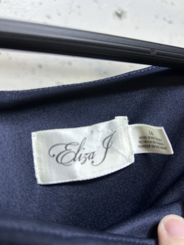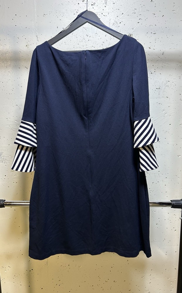 Eliza J Ruffled Bell Sleeve Navy Sheath Dress Size 14