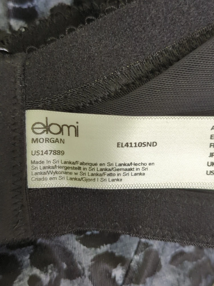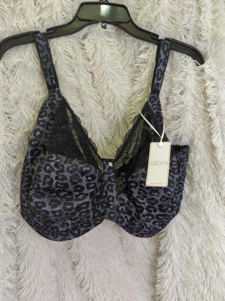 Elomi Morgan Stretch Lace-Trimmed Animal Print Full-Busted Contour U-Back Underwire Bra $72.00 From Elomi, this bra features: stretch lace trim 3-section contour cups with underwire support Elastic neck edge for ease of fit fully-adjustable straps Side panel for support and shape built-up mesh wings leotard back hook-and-eye back closure 3 rows of hooks nylon/polyamide/spandex/polyester hand wash