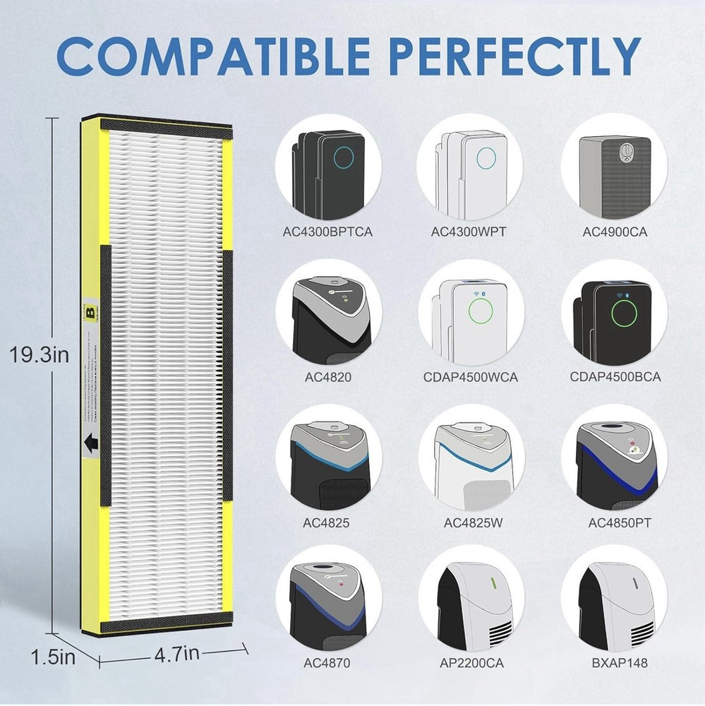 The Elowoke 2 Pack 4825 HEPA Filter B Replacement Air Purifier Filter is designed for air purifiers and air conditioners. It utilizes True HEPA filtration technology and Carbon Fiber filter media to effectively capture airborne particles and improve indoor air quality. Each pack contains 2 black filters with a lifespan of 6 months, making it convenient for regular maintenance and replacement. Perfect for home improvement and ensuring a clean and healthy living environment.