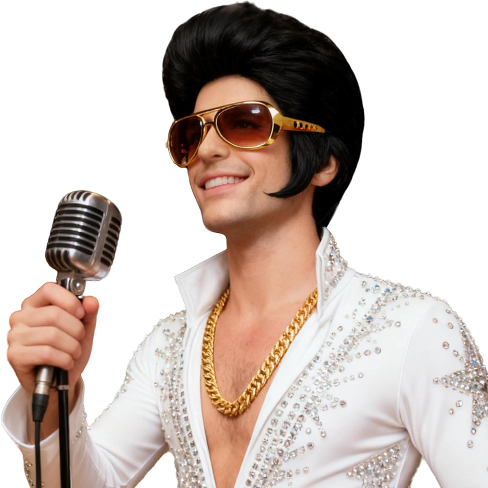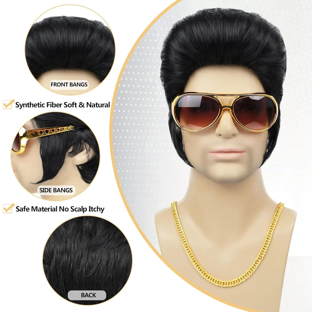 Store New Arrivals Add to Favorite View Feedback Contact Elvis Presley Halloween 50S 60S Rock Wig with Glasses and Necklace Singer. Description Style Classic Color Black+Glasses+Golden Chain Material High Temperature Fiber Package Dimensions 8.94 x 7.28 x 2.36 inches; 10.55 ounces Department mens Special Feature Glueless Hair Type Curly 【Salute to the Legend】Complete your singer star look with our fabulous 50s rock legend costume wig with Gold Chain, Sunglasses accessories, you will get back to the 1950s in seconds and light up the party! 【High Quality Material】50s rock star costume wig is made of high quality materials heat resistant synthetic fiber, which is natural, soft and fluffy, breathable and comfortable, suitable for long-term use. 【Adjustale Size】Suitable for 20 inches- 23 inches with 2 adjustable straps and 2 fixed comb clips inside the cap. It can be adjusted to a comfortable position to suit most people head sizes, which is comfortable to wear all day long. 【Wide Occasion】This funny costume wigs is a perfect choice for all kinds of parties. You can wear it on Halloween, 50s 60s 70s 80s themed parties, Rocker costume, Singer cosplay, Carnival, Disco, Karaoke Party, or just for fun. It's also a good idea for gifting to friends. 【Warm Tips】This is a full wig, and comes pre-styled. Before wearing, please comb the hair to make the wig more natural and soft. No reasons return with refund. Any questions, please contact us asap. If you don't like our wigs, Please return all items, such as gift accessories, when returning. Thank you ! Product description The video showcases the product in use. The video guides you through product setup. The video compares multiple products. The video shows the product being unpacked. 1950s Elvis Wig Merchant Video The video showcases the product in use. The video guides you through product setup. The video compares multiple products. The video shows the product being unpacked. 1950s Elvis Wig Merchant Video ABOUT US We offer the best prices around on high quality products. Our E-store includes media such as books, movies, music and games while offering electronics, toys, sporting apparel, clothing, tools, general home, garden items and more. SHIPPING We are always working hard to ensure your package arrives as soon as possible. Please understand that some factors like weather, high postal traffic, and the performance of shipping companies are outside of our control. We offer free shipping to the lower 48 states and ship within 2 business days of payment, usually sooner. We do not accept P.O. Boxes. Please provide a physical address. For shipping outside of the continental USA, we only use eBay's Global Shipping Program.The item is shipped to KY and then sent to the rest of the world. International customers are responsible for all duties and taxes. Continue to check out in order to calculate costs for shipping the item to your country. Messages regarding eBay's Global Shipping Program MUST be directed at eBay EXCLUSIVELY. RETURNS We offer a 30-Day Return Policy on items which you are not completely satisfied with. You have the option for a full-refund or an exchange of the item. No returns are available on items shipped outside of the USA. PAYMENT We accept PayPal. CONTACT US This page content is yet to come Please ad us to your favorite seller and visit again later Thank You CUSTOMER SATISFACTION We try our very best to make sure every customer is completely satisfied. If there's a problem, message us! We're happy to help. WE ACCEPT Copyright © 2021 AutoDS. | All Rights Reserved