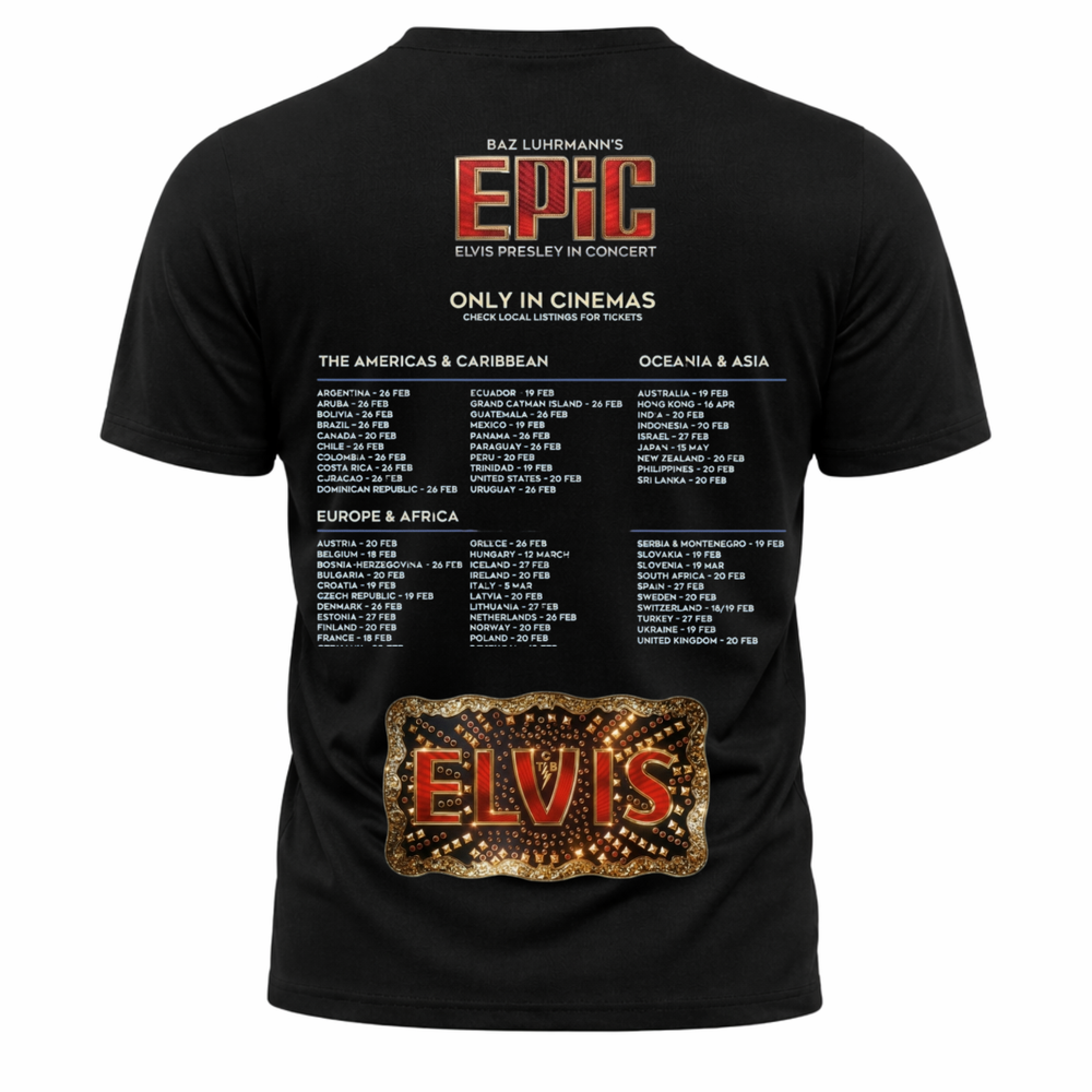 Elvis Presley in Concert 2026 All Over Print Shirt - Full Size Premium All-Over Print Tee – Limitless Design, Unmatched Quality Experience the ultimate freedom of expression with our Premium All-Over Print T-Shirt. Engineered for those who want their apparel to tell a story, this tee serves as a vibrant canvas for your logos, quotes, and original artwork—stretching from sleeve to sleeve and front to back. Why Choose Our All-Over Print Tee? Total Creative Freedom: Unlike traditional printing, we offer 360-degree customization. Design across the entire garment with no limits on colors and no minimum order quantity. Next-Gen Sublimation Technology: We’ve ditched old-school screen printing for advanced Sublimation Printing. This ensures your designs are embedded into the fibers, so they will never fade, crack, or peel, even after countless washes. Premium 100% Polyester Fabric: Crafted from high-quality polyester that feels as good as it looks. It’s lightweight, breathable, and specifically chosen to showcase high-definition, vibrant colors. Built for Longevity: Featuring double-needle hems and a reinforced neck band, this shirt is designed to maintain its shape and withstand daily wear and tear. Product Specifications: Material: 100% High-Grade Polyester. Printing: Full-coverage sublimation (Front, Back, and Sleeves). Durability: Double-needle stitching for extra strength. Care: Machine washable; color-fast and shrink-resistant.