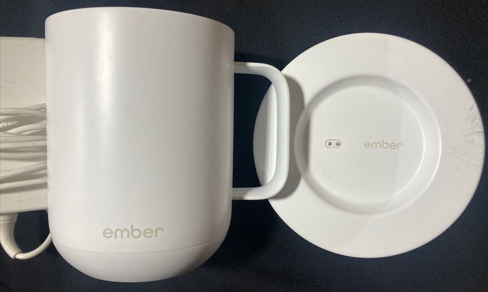 The Ember Temperature Control Smart Mug Set includes two 10oz mugs in a black and white color scheme. Each mug features a handle, LED display, and is made of stainless steel, glass, or ceramic. Ideal for hot beverages, these smart mugs are chip-resistant and have a sleek design suitable for kitchen and gadget enthusiasts.