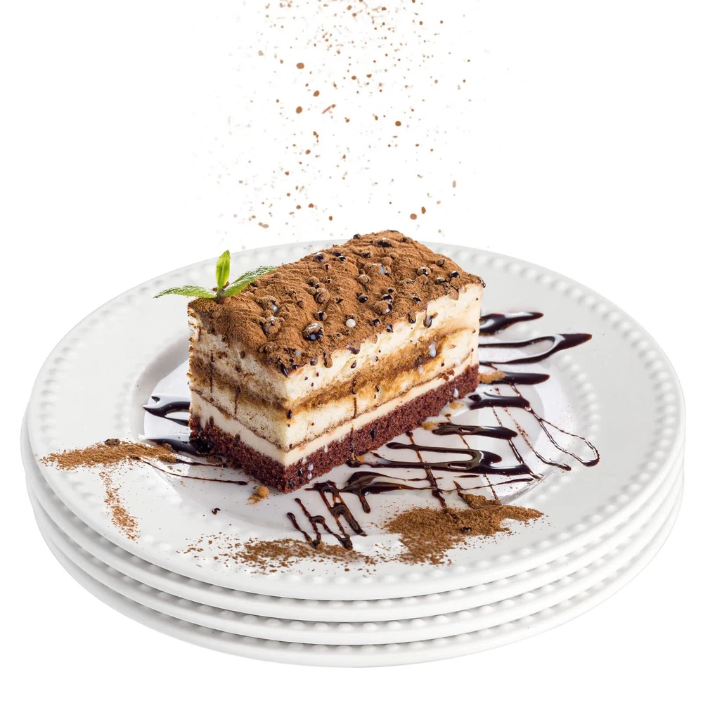 【Embossed Dots Wide Rim Design】A string of embossed dots decorates the wide rim of this white plates with a deep shape that accentuate the foods more attractive in sturdy premium ceramic. We love the fine bright appeal of this salad plates facet and its beautiful rims that gives you a nice grip for every meal. 【Easy Care & Real Stackable】Every piece of this dessert plates are high-fired at 1250ºF for extra strength and durability, these 8 inch heavy duty white ceramic plate cleans up easily in dishwasher. Easy care and real easy stackable. For a cohesive and grace look, matched with our small dinner plates collections. 【Versatile & Classic】Perfect size for your everyday snacks, appetizer, side dishes, cake, breads, sandwiches, butter, cheese, fruits, and crackers and more. These small plates are ideal for any meal that includes a sauce or liquid. The raised edges keep everything centrally located on the ceramic plates. Dress up or down with its ease and elegance of this kitchen plates on any entertainments. These embossed dinner plates will be your best go to plate on any parties. 【Creative Gift】appetizer plates will delight your families and guests on dinner parties or weeknight meals. A super ideal choice for house warming, wedding shower and more holiday plates. Nice idea as Christmas salad plates and thankful plate decor. 【Strong Package & After-service】We will offer rigorously tested package and a 90 days free replacement or refund if anything goes wrong with the purchase.