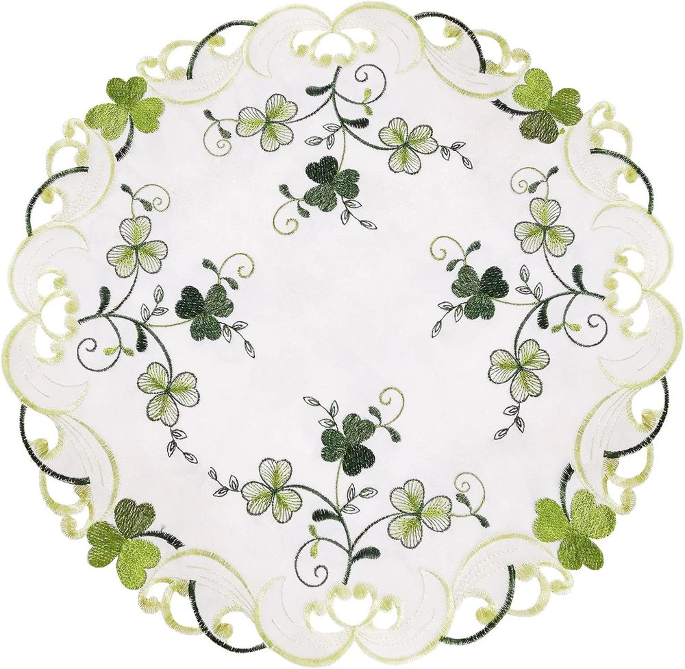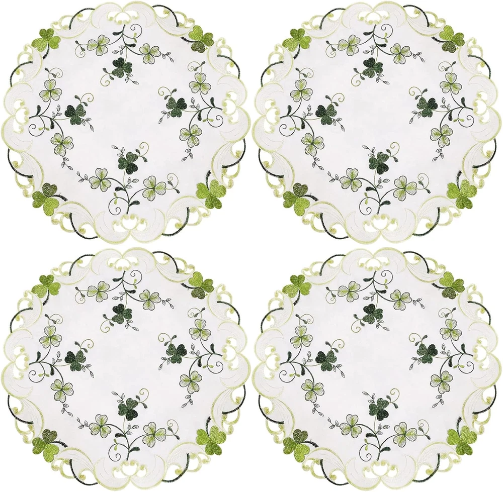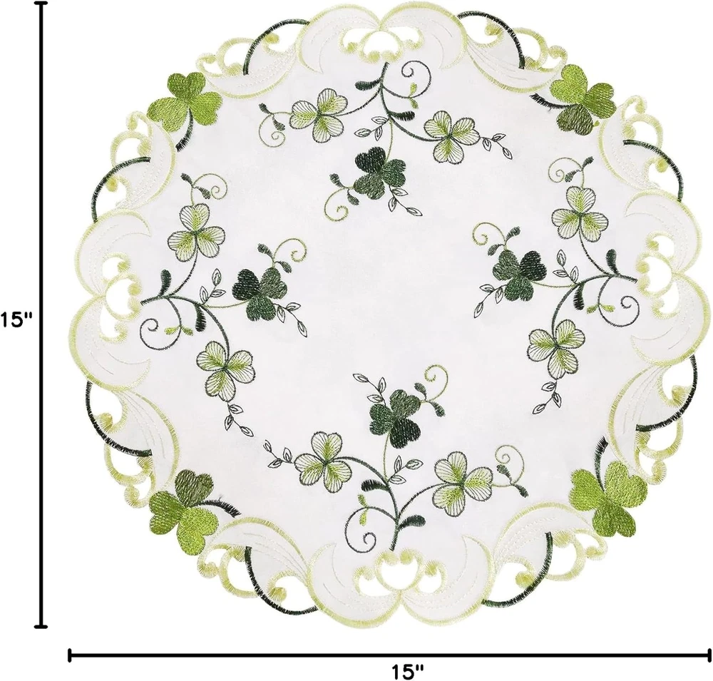 Store New Arrivals Add to Favorite View Feedback Contact Fast deliveries to the customer's home Quality customer service John Make the customers happy! Embroidered Irish Clover St. Patrick’S Day Table Runner, Spring Shamrock Decorations (Round 15 Inches Set of 4) Description 100% Polyester Imported 🍀 Embroidered adorable shamrock makes it a nice décor for St. Patrick’s Day 🍀 Absolutely elegant embroidery and stitching work 🍀 Beautiful hand-cut-work, made of polyester 🍀 Matching table runners, placemats, tablecloth and valance are all available 🍀 Machine or hand wash, slightly iron Product Description Embroidered adorable shamrock Made of polyester. Matching table runners, placemats, Napkins, doily, tablecloth and valance are all available Absolutely elegant embroidery and stitching work Elegant details and Beautiful hand-cut-work make it look expensive Machine washable; slightly steam iron; no shrink, no wrinkle, no color run after washing Matching table runners, placemats, Napkins, doily, tablecloth and valance are all available Runners Place-mats 13×19 inches Small Round tablecloths Matching and valance, Window Curtain Swag and Tiers Valance Oval tablecloths Swag and Tiers Make sure you select right size before you order Square 52 inches Round 34 inches Round 70 inches Oval 57×88 inches Absolutely beautiful colors and nice quality. Matching table runners, placemats, Napkins, doily, tablecloth and valance are all available! Extremely cheerful design and will be perfect for St. Patrick’s Day, Spring Or Everyday Use! Item model number 3166 Product Dimensions 15"L x 15"W Number of Pieces 4 Assembly required No Color Cream Material Polyester & Polyester Blend Country of Origin China Perfume Festive Item Weight 3.2 ounces Batteries required No Shape pointed Size Round 15 Inches Set of 4 Occasion Christmas, Father s, Housewarming, Thanksgiving Import Imported Fabric Type 100% Polyester Product Care Instructions Hand Wash,Iron Included Components runner ABOUT US We offer the best prices around on high quality products. Our E-store includes media such as books, movies, music and games while offering electronics, toys, sporting apparel, clothing, tools, general home, garden items and more. SHIPPING We are always working hard to ensure your package arrives as soon as possible. Please understand that some factors like weather, high postal traffic, and the performance of shipping companies are outside of our control. We offer free shipping to the lower 48 states and ship within 2 business days of payment, usually sooner. We do not accept P.O. Boxes. Please provide a physical address. For shipping outside of the continental USA, we only use eBay's Global Shipping Program. The item is shipped to KY and then sent to the rest of the world. International customers are responsible for all duties and taxes. Continue to 'check out' to calculate costs for shipping the item to your country. Messages regarding eBay's Global Shipping Program MUST be directed at eBay EXCLUSIVELY. RETURNS We offer a 30-Day Return Policy on items in which you are not completely satisfied with. You have the option of a full-refund or an exchange of the item. No returns are available on items shipped outside of the USA PAYMENT We accept PayPal. CONTACT US This page content is yet to come Please ad us to your favorite seller and visit again later Thank You CUSTOMER SATISFACTION We try our very best to make sure every customer is completely satisfied. If there's a problem, message us! We're happy to help. WE ACCEPT