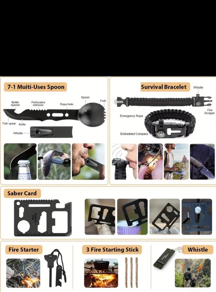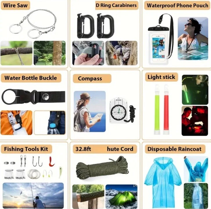 This 250-piece survival kit is perfect for emergency situations, whether you're backpacking, hunting, camping, or hiking. The kit includes a whistle, multi-tool, emergency blanket, paracord, fire starter, flashlight, compass and much much more. The items are made of high-quality materials and are suitable for various outdoor activities. The kit is lightweight and compact, making it easy to carry in your backpack. Get prepared for any emergency with this reliable and versatile survival kit.