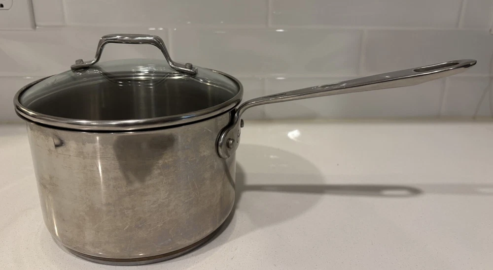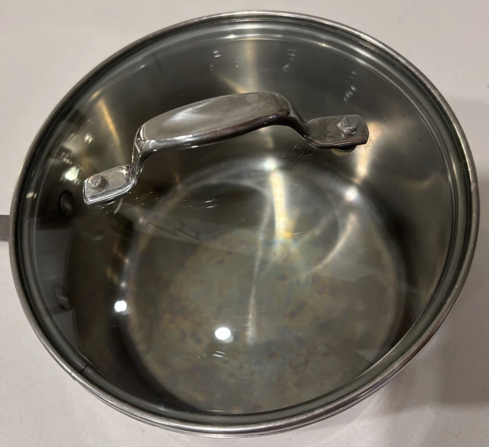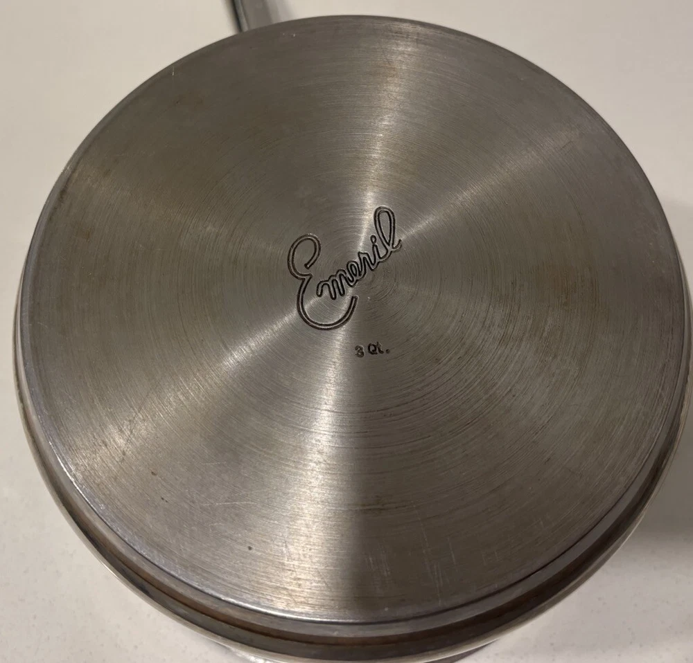 In excellent condition, there are no dents. Please see all attatched pictures We ship with TLC Fast shipping. Crafted for versatility and durability, the Emeril 3Qt Sauce Pan is a kitchen essential designed to meet the demands of any cooking style. Constructed with a robust stainless steel construction and featuring a copper core, this pot ensures even heat distribution for consistent cooking results. Compatible with gas, electric, and induction stovetops, it's equipped to handle various cooking methods with ease. The pan comes complete with a lid, enhancing its functionality for simmering and reducing sauces. Its long handle provides a secure grip for safe handling, while the easy-clean surface makes maintenance a breeze. With a capacity perfect for a variety of recipes, this two-piece set is a practical addition to any kitchen collection.