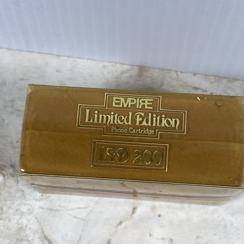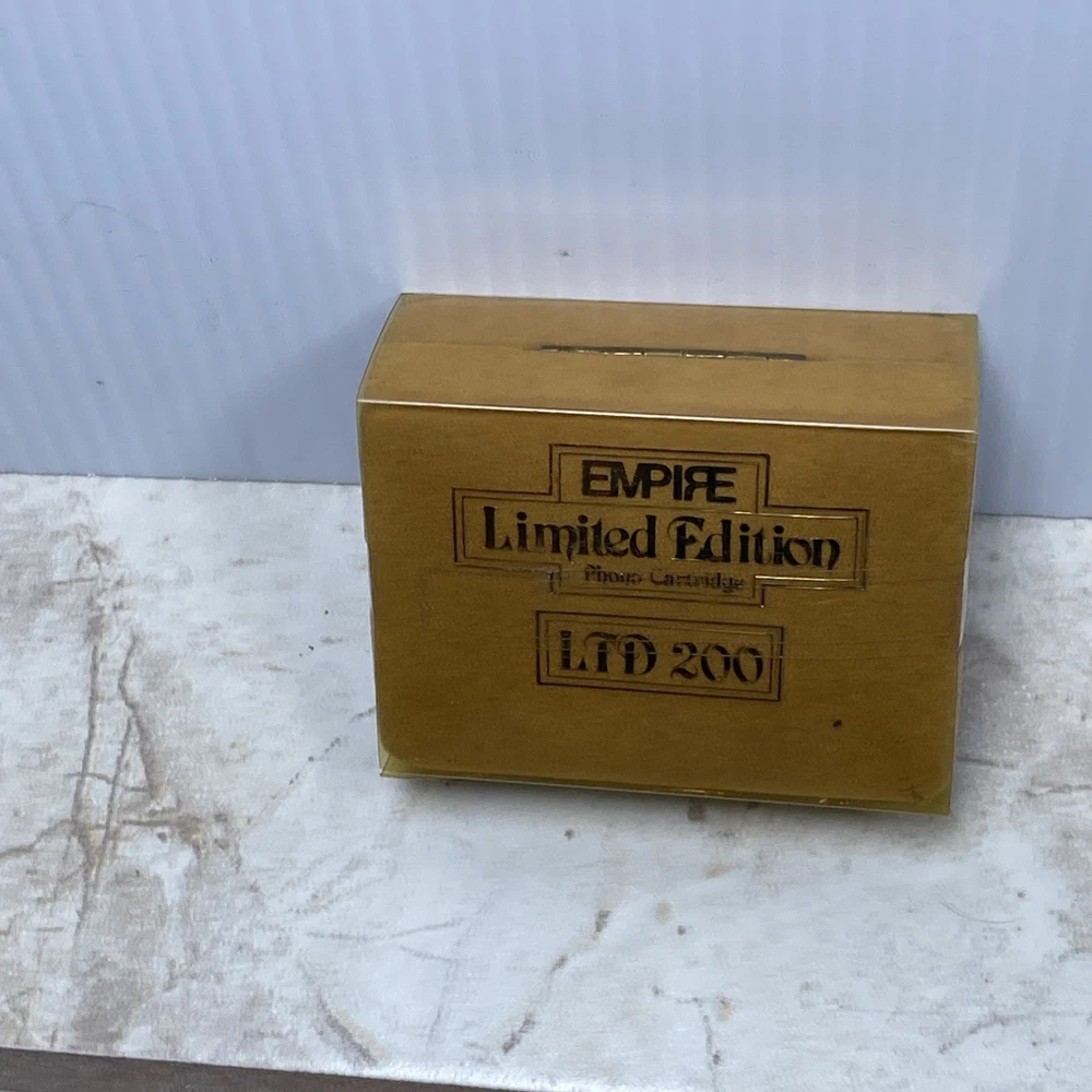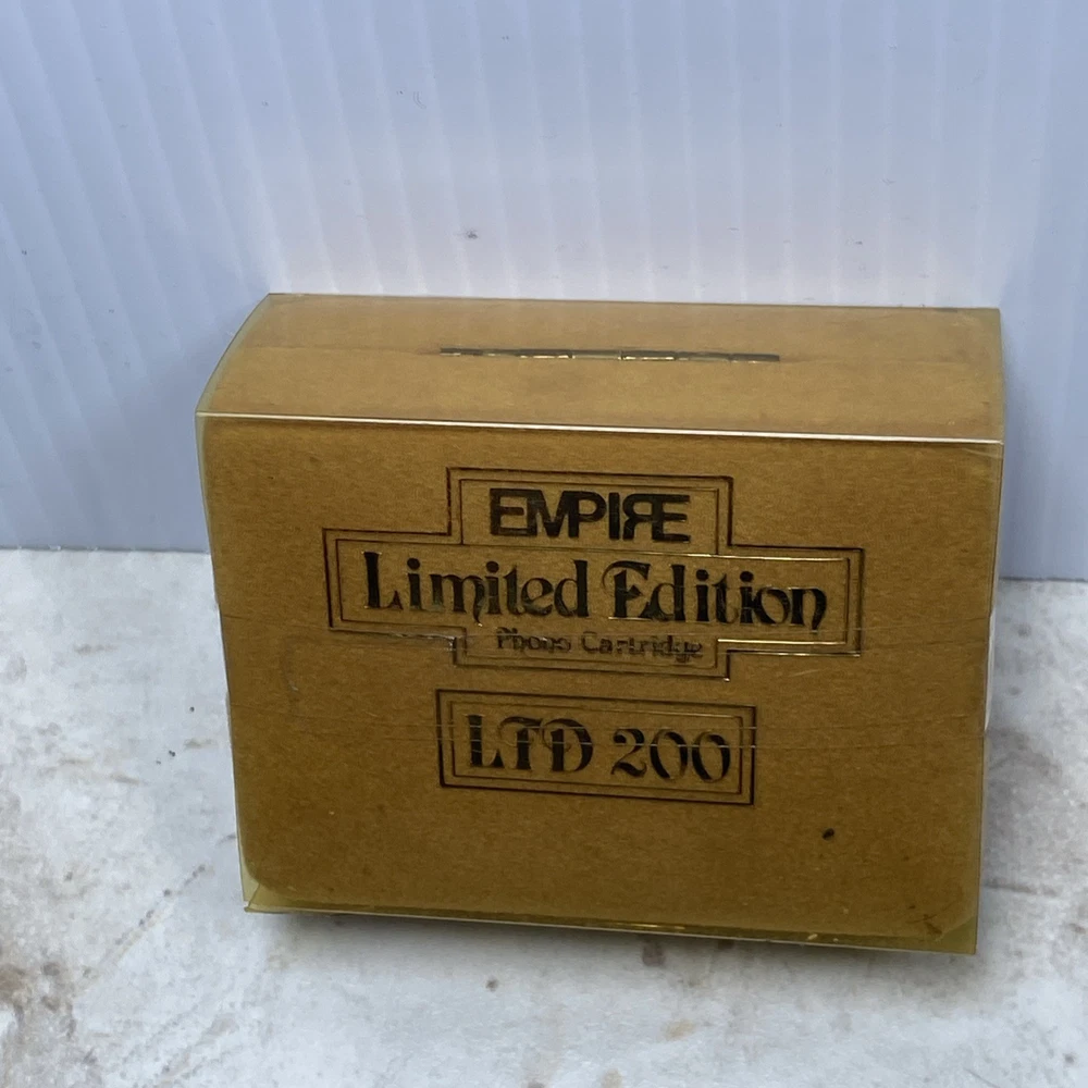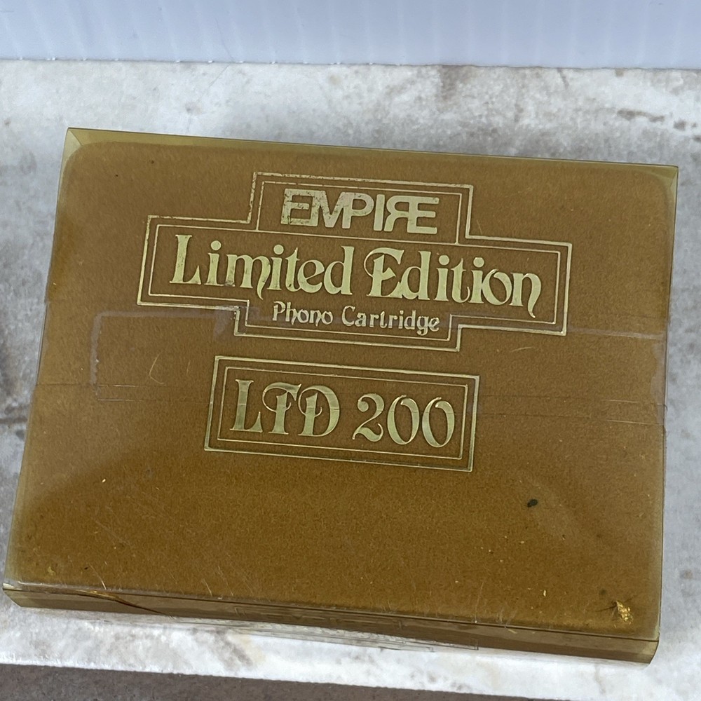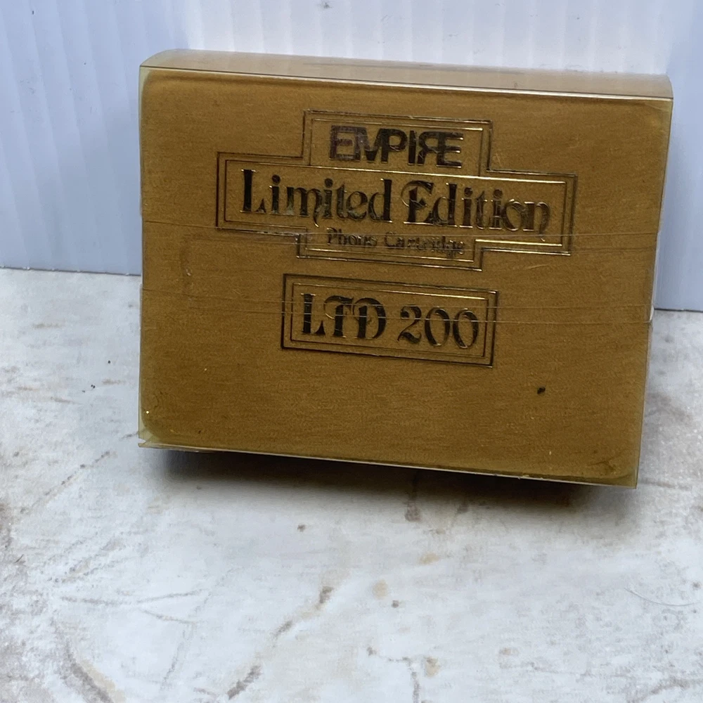 Up for sale is a sealed Empire LTD 200 Limited Edition phono cartridge. This is a rare vintage cartridge, highly sought after by audiophiles and collectors for its smooth, warm sound and excellent quality. Made by Empire Scientific, the LTD 200 is a moving magnet (MM) cartridge known for its rich tone and superior craftsmanship. Item Details: • Brand: Empire Scientific • Model: LTD 200 • Type: Moving Magnet (MM) Phono Cartridge • Condition: New – Factory Sealed • Era: Vintage (likely late 1970s–1980s) • Packaging: Original box with gold finish and sealed plastic wrap • Origin: Made in the USA (Empire was a respected U.S. audio brand) What’s Inside (Typical Contents Based on Similar Units): • Empire LTD 200 cartridge • Elliptical stylus (may be pre-installed or separate) • Mounting screws and hardware • Possibly a spec sheet or small instruction manual ⚠️ Important Note: The box is sealed, but when gently shaken it produces a rattling sound. This is likely due to loose mounting hardware or internal packaging — a common occurrence in factory-sealed vintage phono cartridges. Because this item is sealed and untested, it is being sold AS-IS with no returns. Shipping & Handling: • Will be carefully packed and shipped with tracking • Ships within 1 business day A great find for a turntable enthusiast or vintage audio collector. Rare to find sealed!