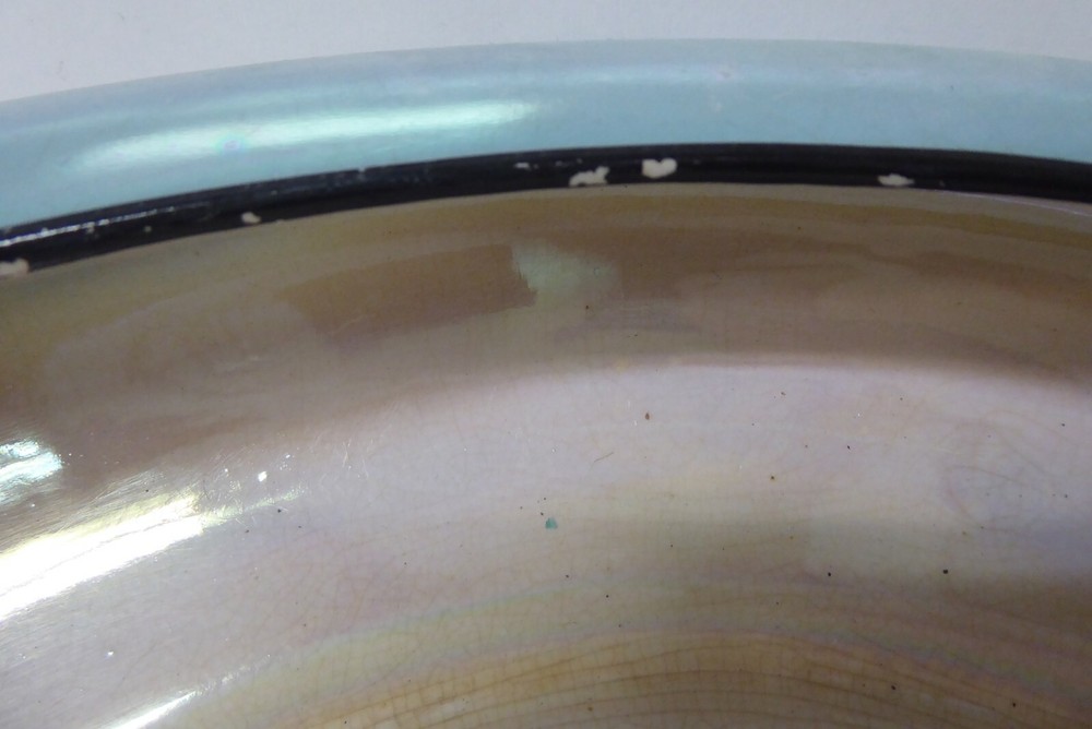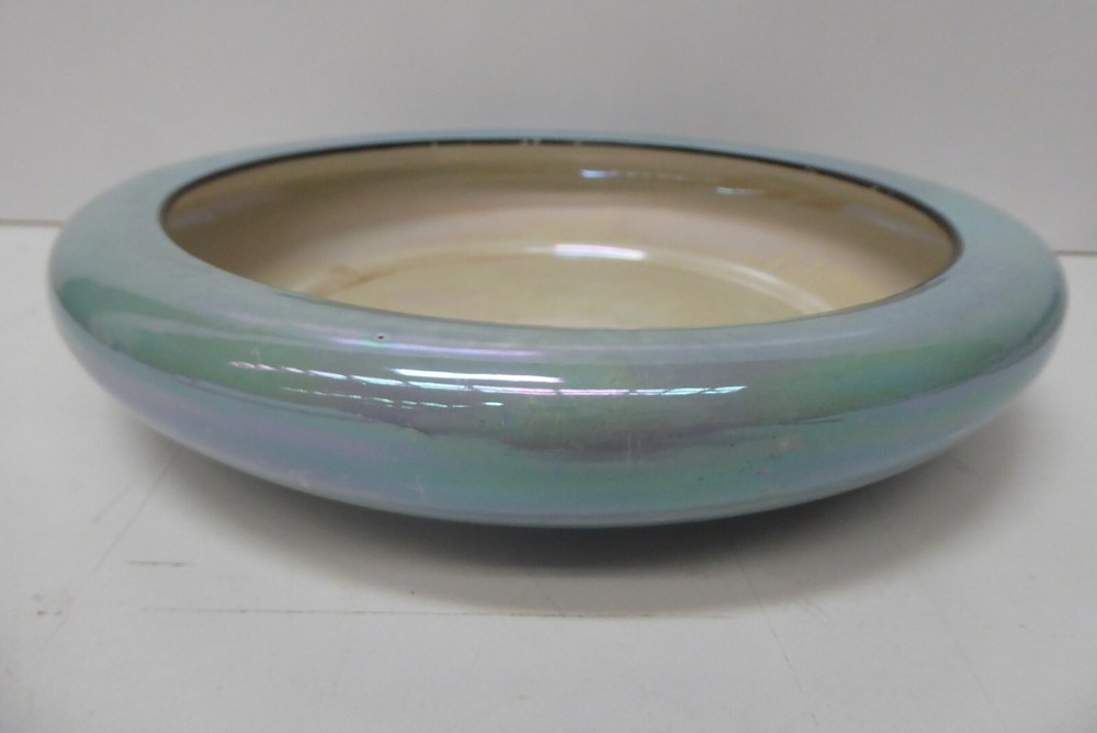 EMPIRE WARE EPC STOKE ON TRENT LUSTRE GLAZE FLOAT BOWL CENTRE PIECE ART DECO STAMPED TO BASE 28 CM DIAMETER 5.5 CM HIGH FAIR CONDITION - SOME SCRATCHING TO LUSTRE GLAZE AND BLACK GLAZE RIM MILD CRAZING SEE PHOTOS FOR BEST GUIDE TO CONDITION I AM LISTING SOME OTHER ESTATE PIECES I can combine for postage. CHECK MY OTHER LISTINGS FOR MORE