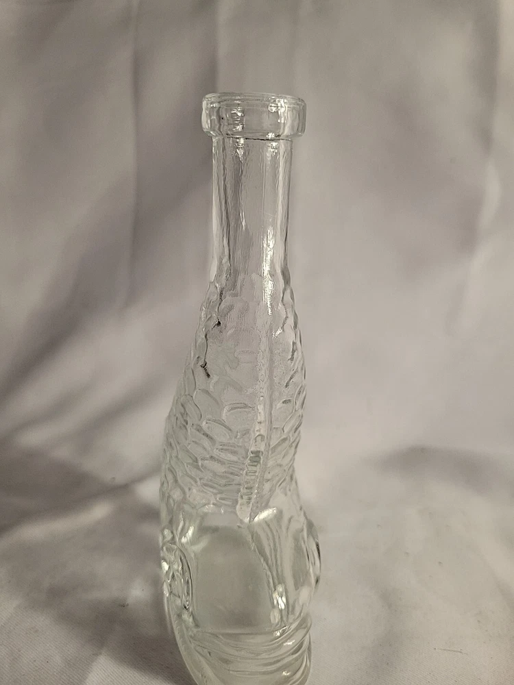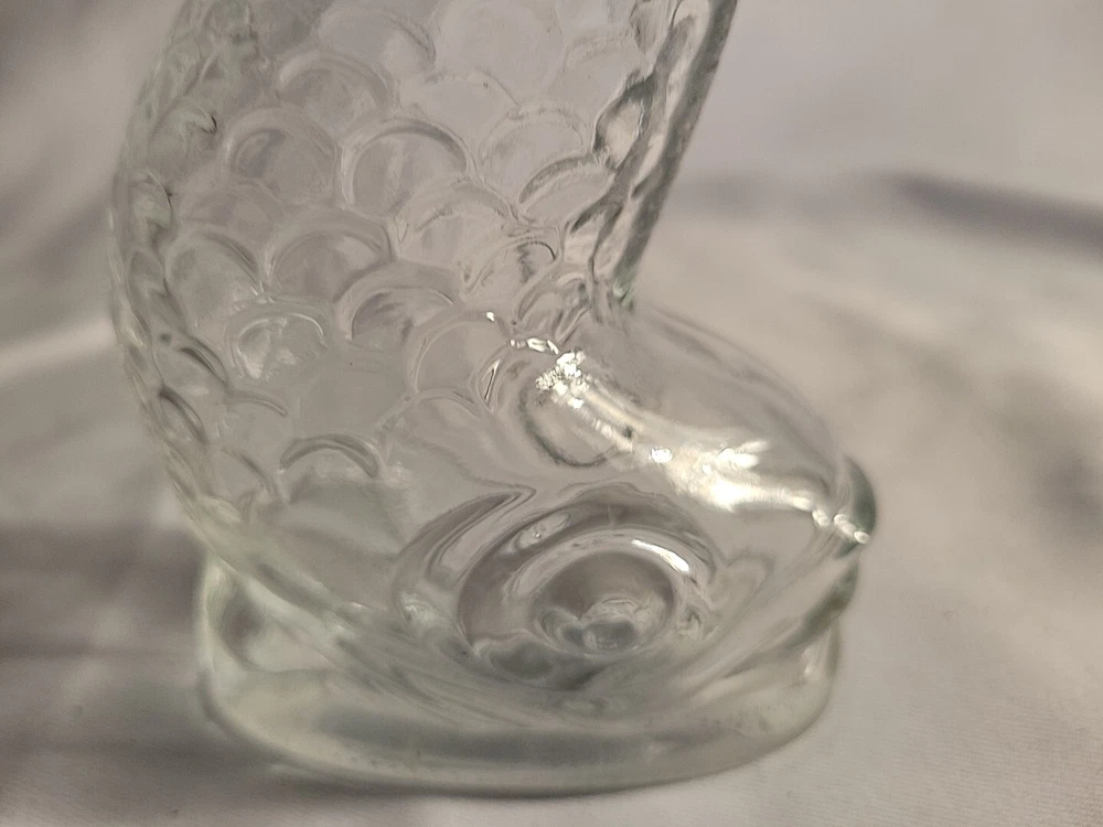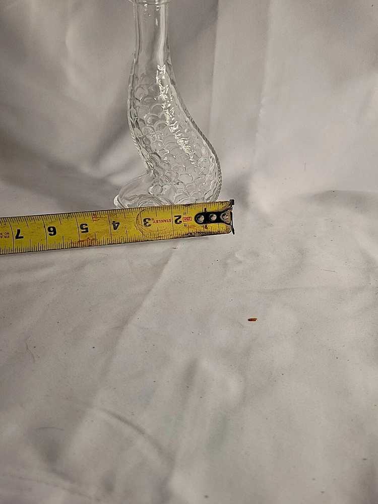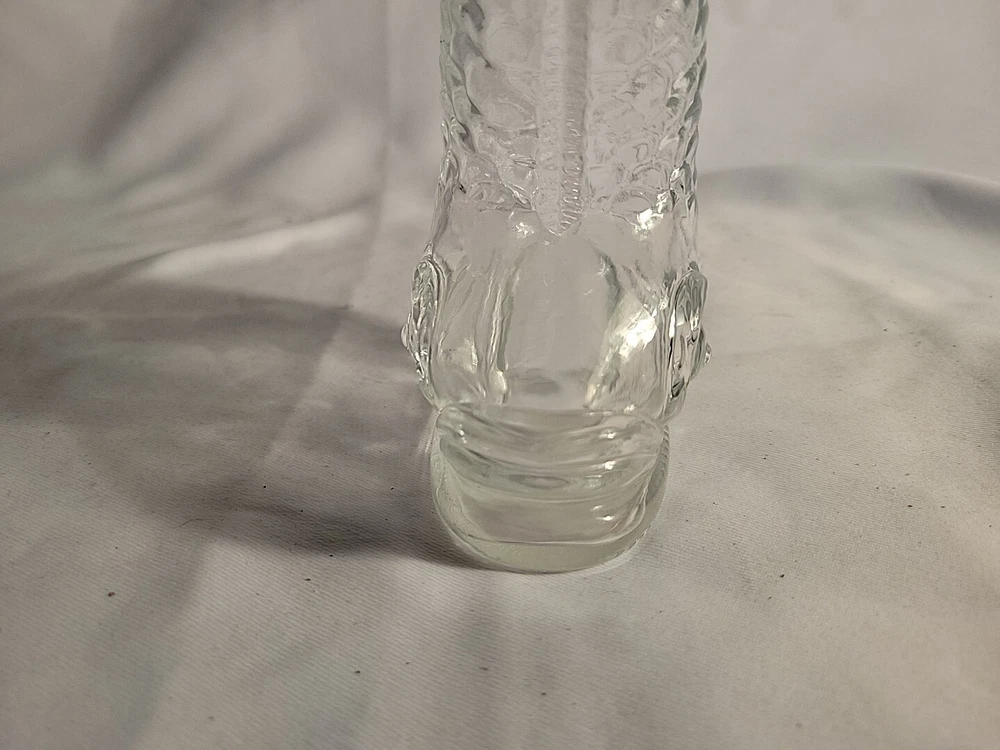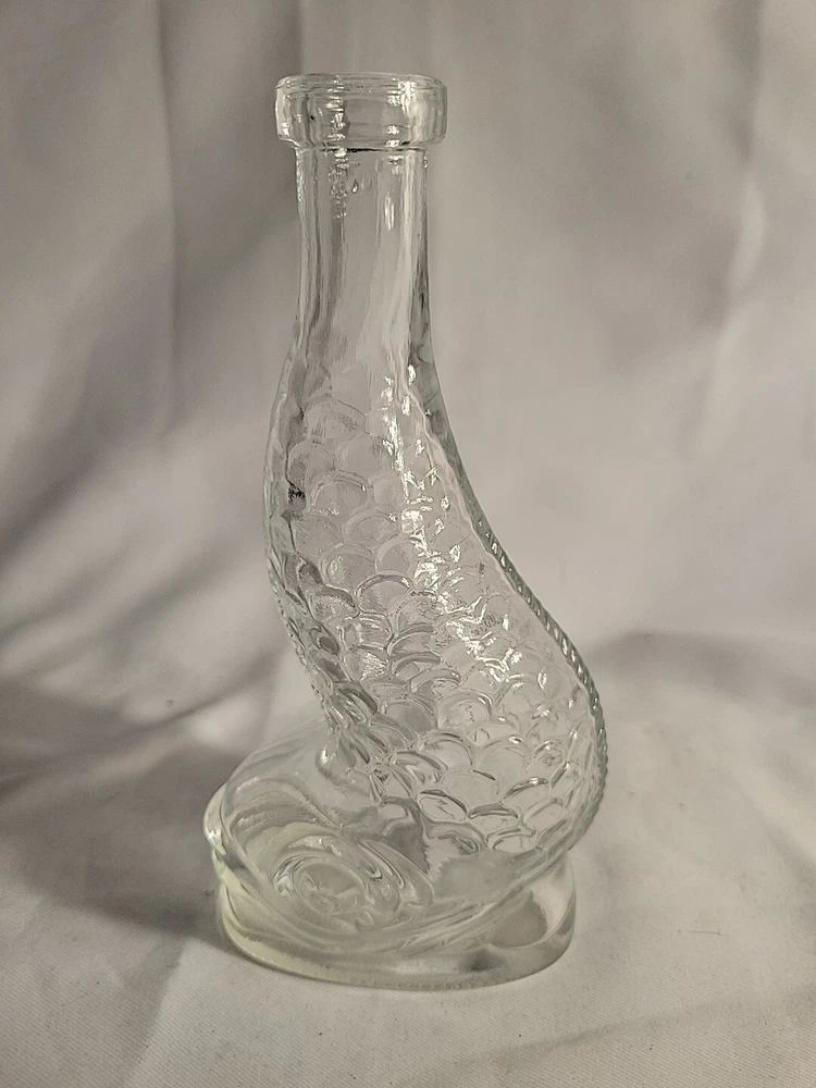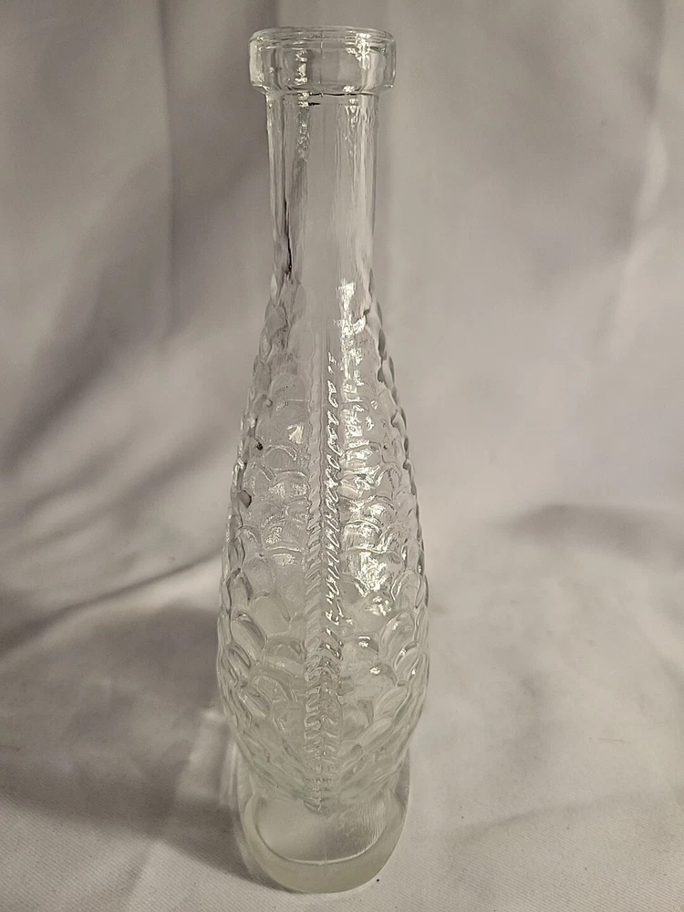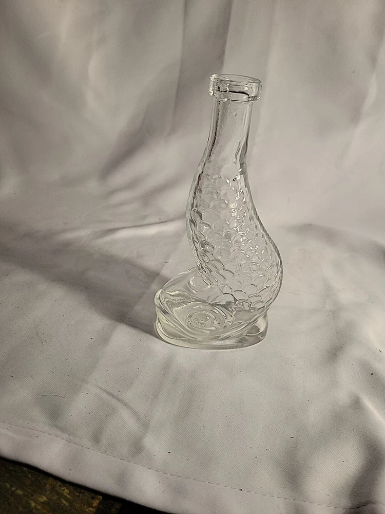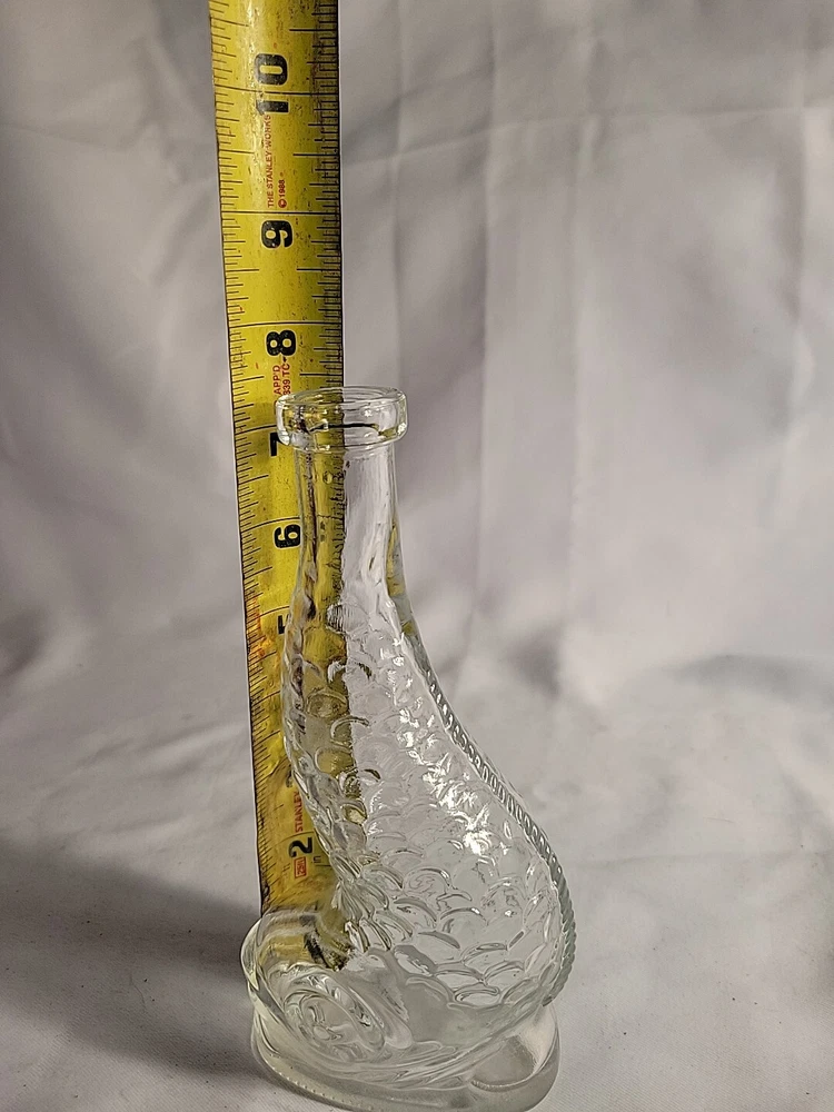This stunning Empoli decanter is a unique piece that is sure to impress. Made of clear glass, this vintage decanter features a beautiful dolphin spiral shape that is handcrafted with an old-world Italian style. The decanter stands at 16 inches tall. The origin of this beautiful piece is Empoli and the brand is also Empoli. The production technique used is hand-blown glass and the item is completely handmade. This decanter is perfect for those who appreciate art glass and want to add a touch of sophistication to their collection. The theme of the decanter is fish and it is an original piece, not a licensed reproduction. G1