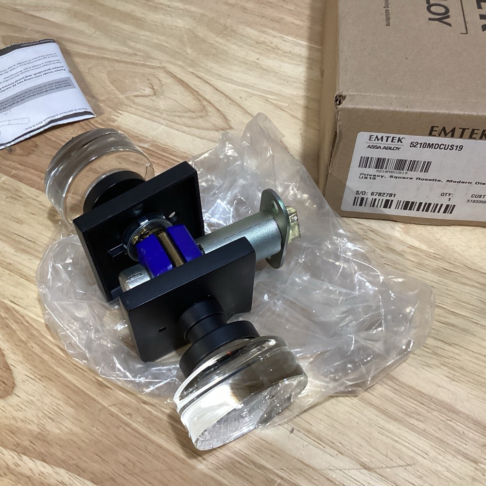 Emtek 5210MDCUS19 Privacy Door Glass Knob Set with Rosette - Flat black open box free shipping