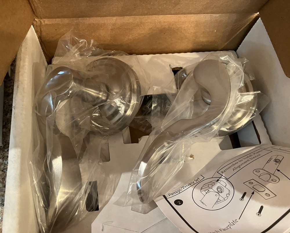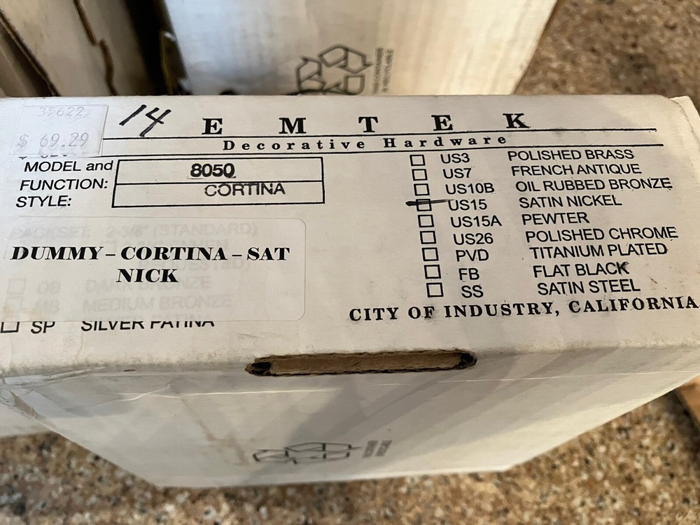 Never used in the box high quality Emtek satin nickel door lever. I have 11 available in the box. Please message me for volume pricing if interested in more than one.