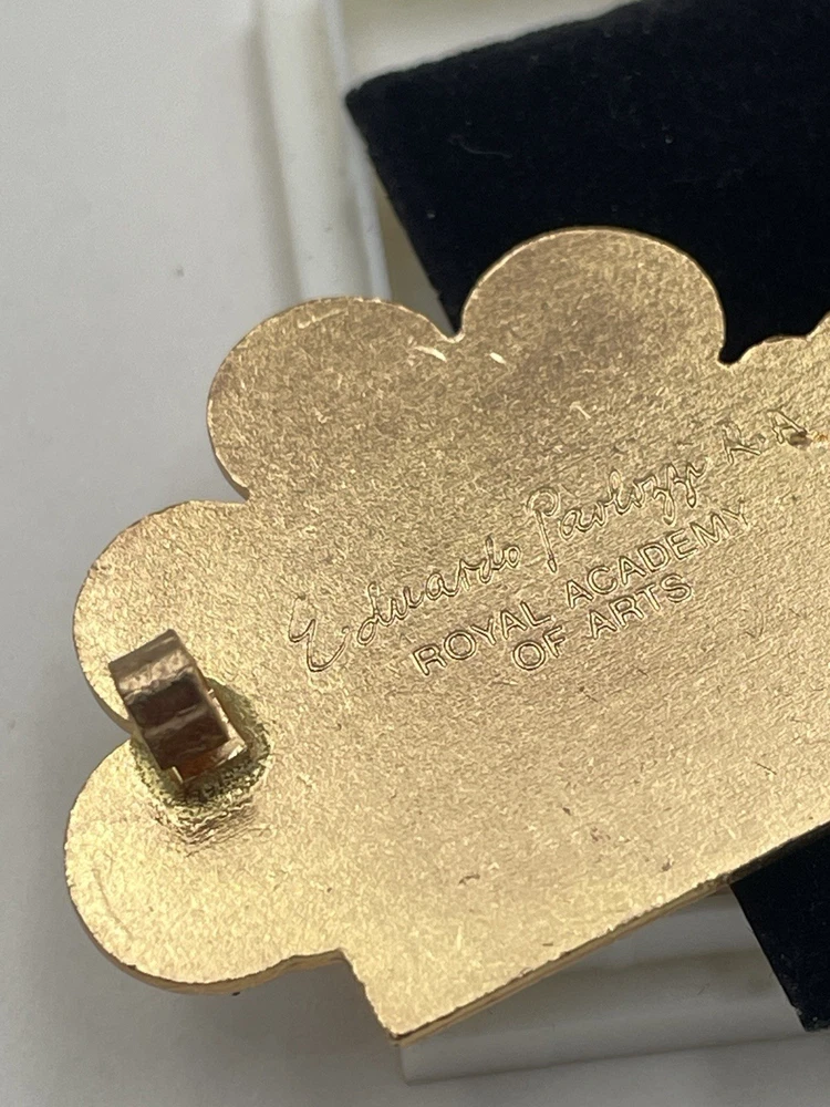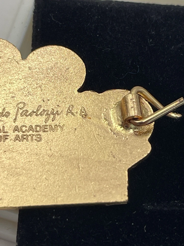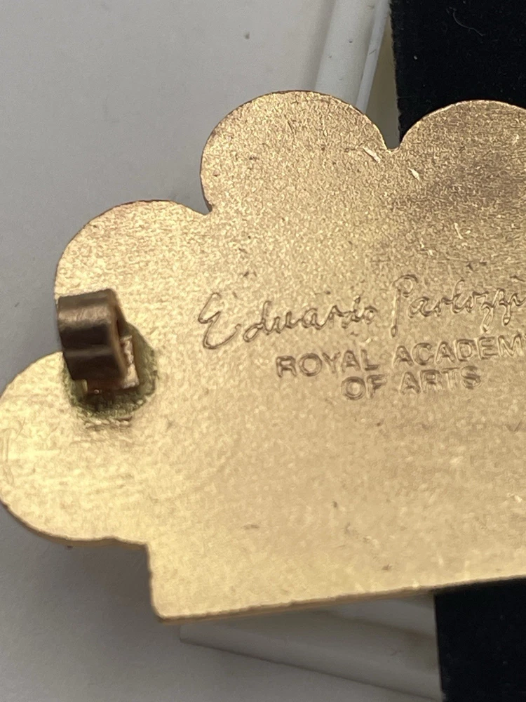 We have for sale a vintage Royal Academy of Arts Eduardo Paolozzi pin/brooch dated 1984. This came from a clean non-smoking upscale estate. What you see in the pictures is exactly what you will receive. We do show 24 pictures! Please look at all 24 pictures closely for details and measurements, thanks for looking! STORE POLICIES: We strive to accurately list everything and we acquire our items from fine estate sales. It is the buyer's responsibility to look at all pictures, read description, and ask any questions prior to bidding or buying! We are not experts on all items we have listed. We are constantly on "the hunt" for exciting things to pass on to you. We take pride in every piece. Items are inventoried and stored in a clean and smoke-free environment. In every title, you will find a number in parentheses. This is for our inventory control only. We always try to select items from estate sales that are also clean and smoke-free. ANY PROBLEMS: We request that if you have any issues upon arrival of your item that you contact us before starting a case. Customer service is top priority for us and we want our customers happy! We also appreciate your positive feedback. If there are any issues that would cause you to leave a neutral or negative feedback when you receive your item, we want to know. We cannot correct a problem if we do not know about it. SHIPPING: We use recycled materials for packaging/shipping! We ship out the same day if payment is received by 12 PM (CST)/2 PM (PST). Packing your item is of the utmost importance and we pack each item for a successful shipping result. With some items we may be double boxing just to do everything we can to get the product to you unbroken. We try to offer free shipping but if we cannot we try to keep our shipping as reasonable as possible. For heavy items, we utilize UPS or FEDEX. This will be shipped either FEDEX GROUND or USPS PRIORITY depending on what is better cost-wise. We do use the most competitive means of shipping value and speed of shipping depending on where you are located. Shipping address will be the address you have in the system. If this needs to change you need to take care of this before purchase. Search the help feature on how you change your address. PAYMENT: Payment must be received within 3 days of purchase unless other arrangements have been made during those 3 days. RETURN POLICY: We do our best to accurately describe every item. Please look at the pictures and description BEFORE bidding or buying. We will accept returns within 30 days of delivery. Refund is given upon receipt of item in the listed condition.