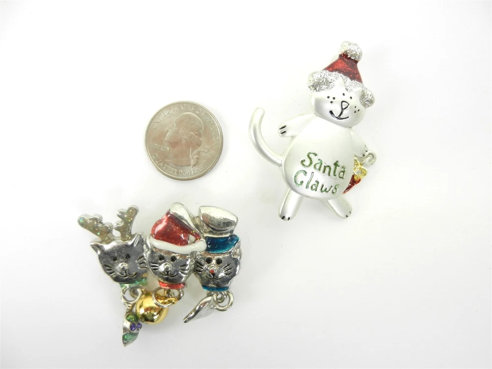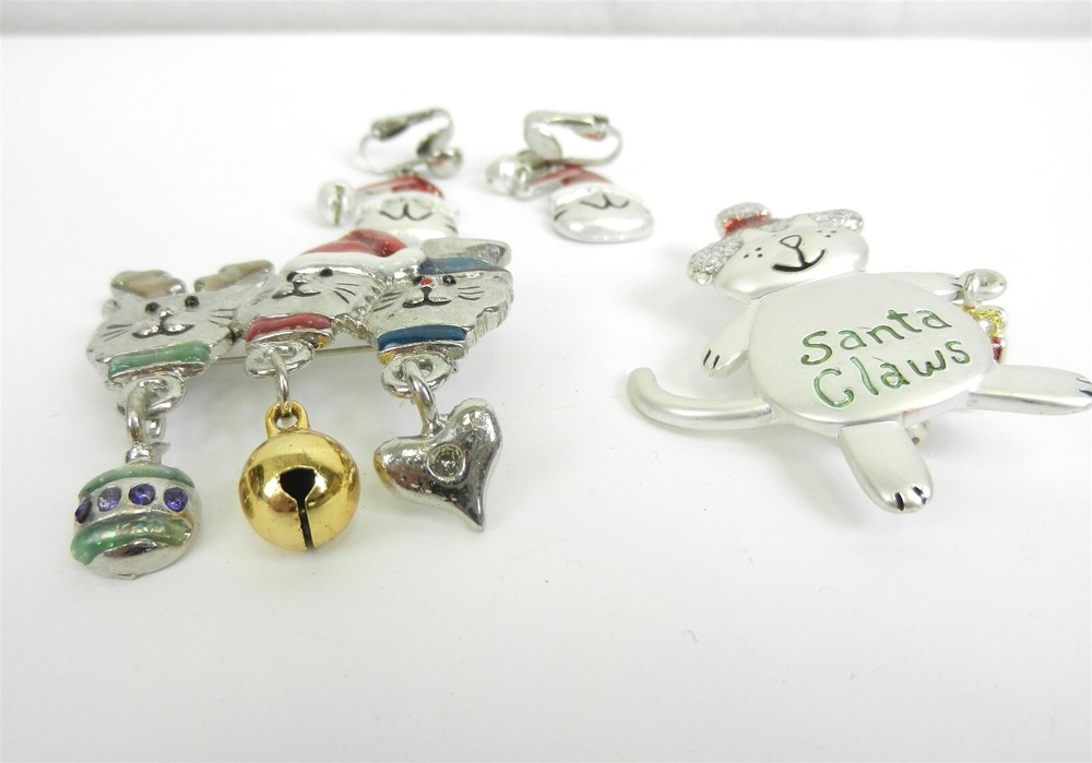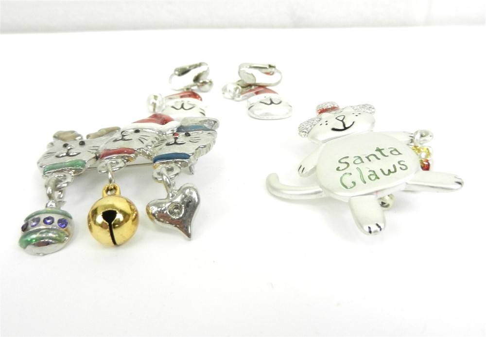 Enamel Accent Christmas Cat Brooches Pierced Earrings 3 Pcs Silver Tone T73d All pieces are in very nice condition. Only one item is marked for a maker. The brooches are 1 3/4" at the longest measurements. The earrings are 1" long. We are not jewelry experts. All conditions, sizes and stones are described to the best of our ability. Some items are actually marked as to the content, weight and stone and this will be noted. Please note that we are out of the office over the weekend. If your item is purchased on Friday you may not receive an invoice until Monday afternoon. Questions may also be answered at that time. Thank you for your patience. The letter and number combination at the end of our title is for inventory purposes only. * I will gladly combine items to reduce shipping costs if more than one listing is purchased. If buying multiple items, PLEASE do not pay for the item until you have made all of your selections. Then, located at the top right corner of your cart page, you will find "Request Total". Click there to review your items again and submit the list. We will send an invoice at that time, combining all items into one package to reduce the shipping cost. See my other listings for more items selling at this time. All questions are welcome. Thank you!!! Powered by SixBit's eCommerce Solution