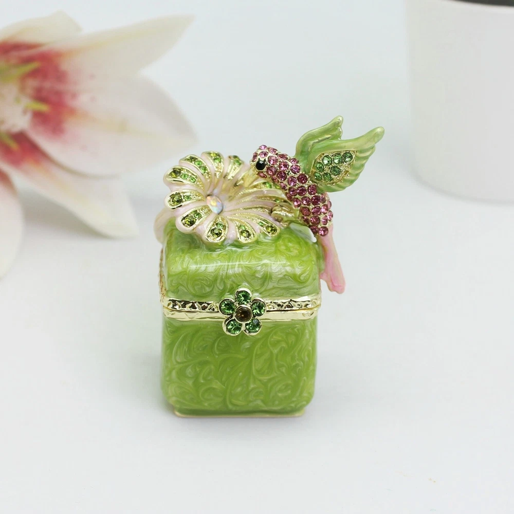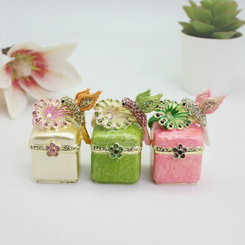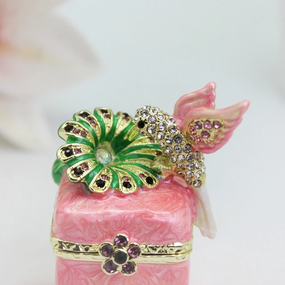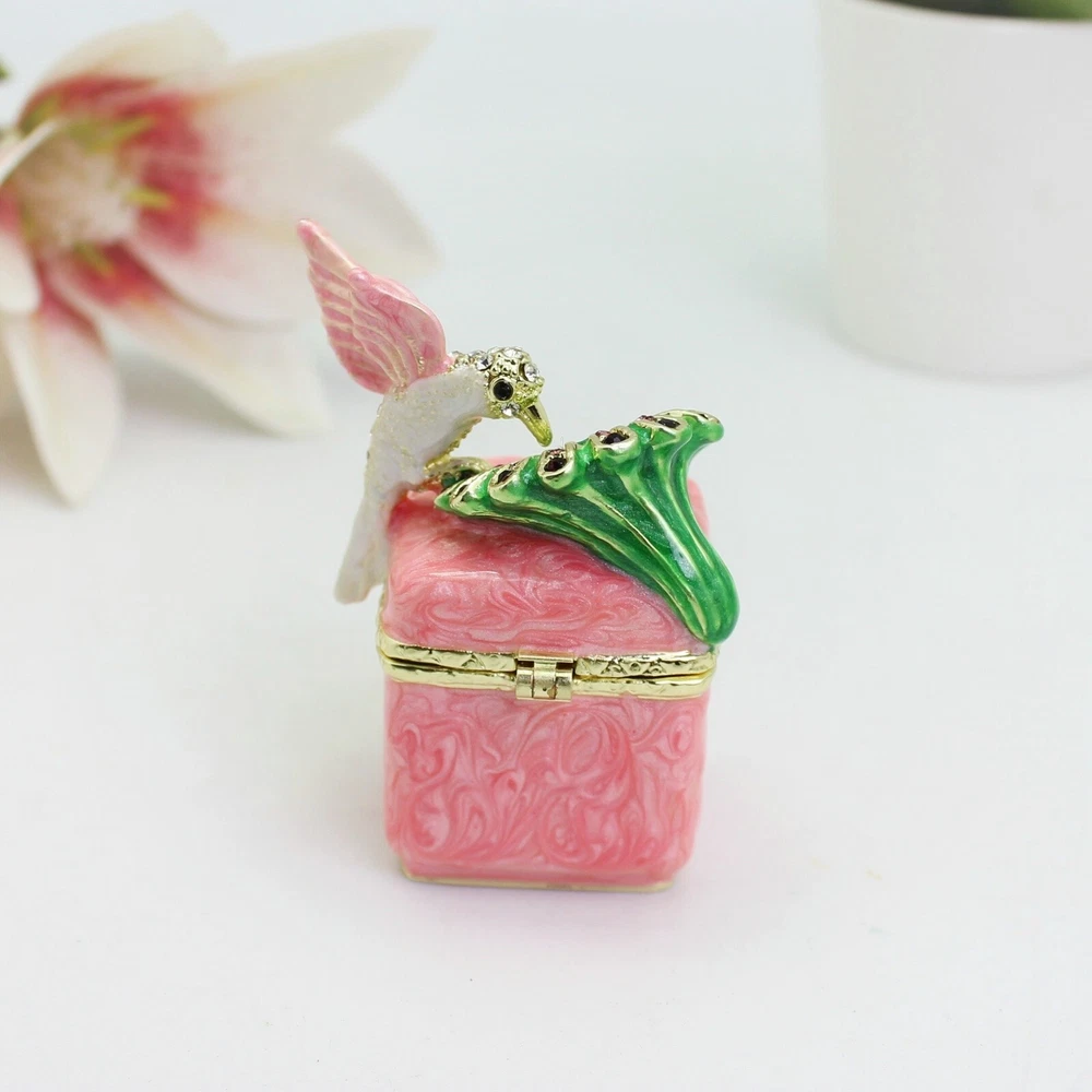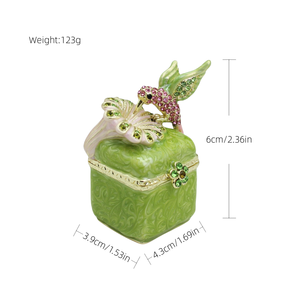 【 Materials】Pewter Enamel Made in GuangDong 【 Package】Gift Box 100% Brand New Handmade Pewter Enamel Trinket Box Handmade by masters with 20+ Years Experience Can be use for Birthday Gifts,Wedding Favor,Christmas Gifts,Home Decorative This collectible trinket box is meticulously crafted from fine pewter I t is hand enameled and then lavishly inlaid with crystals by skilled artisans. Opens on a hinge to reveal the hand painted interior Magnetic closure to keep the box shut securely , T his jewelry trinket box is made of a pewter-like alloy and finished with a high polished finish Versatile Use: Perfect as both a decorative piece and a functional trinket box I deal for storing small precious items while bringing fortune symbolism
