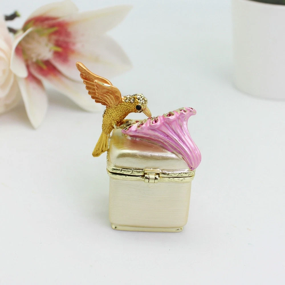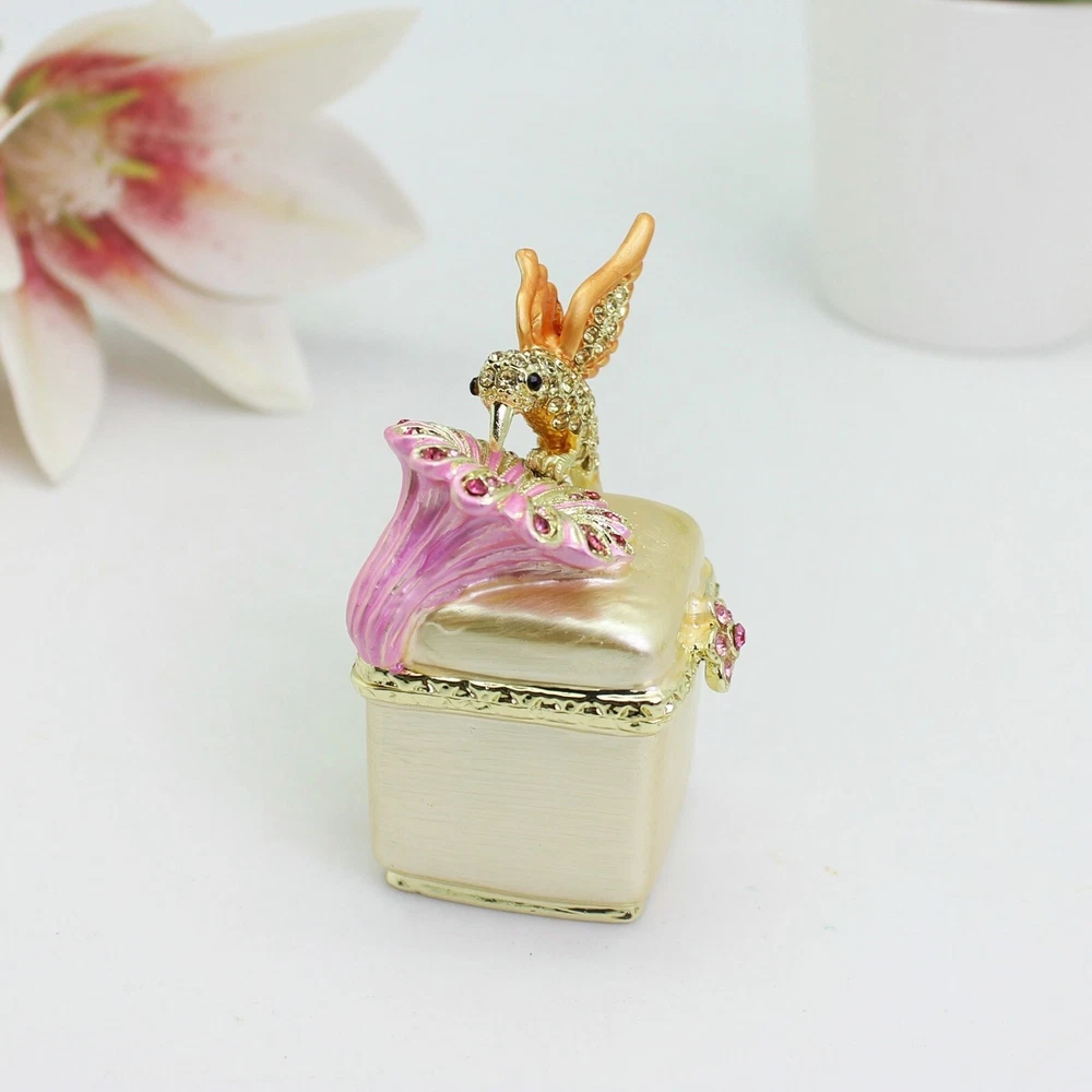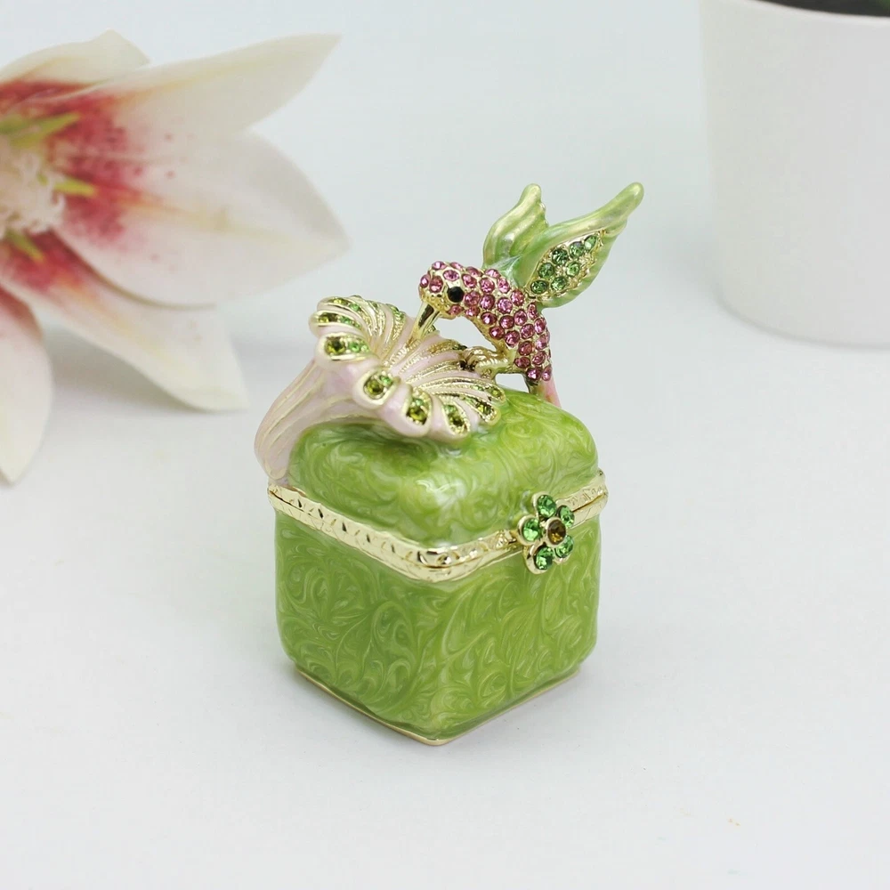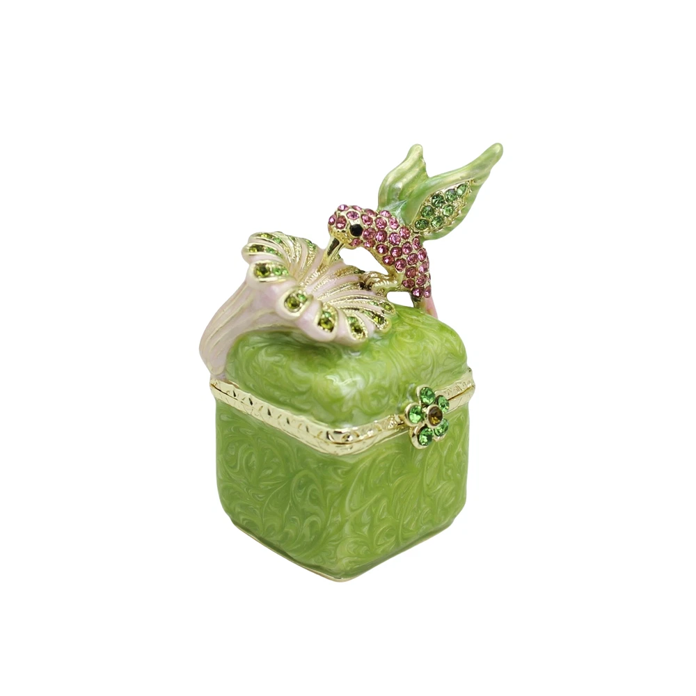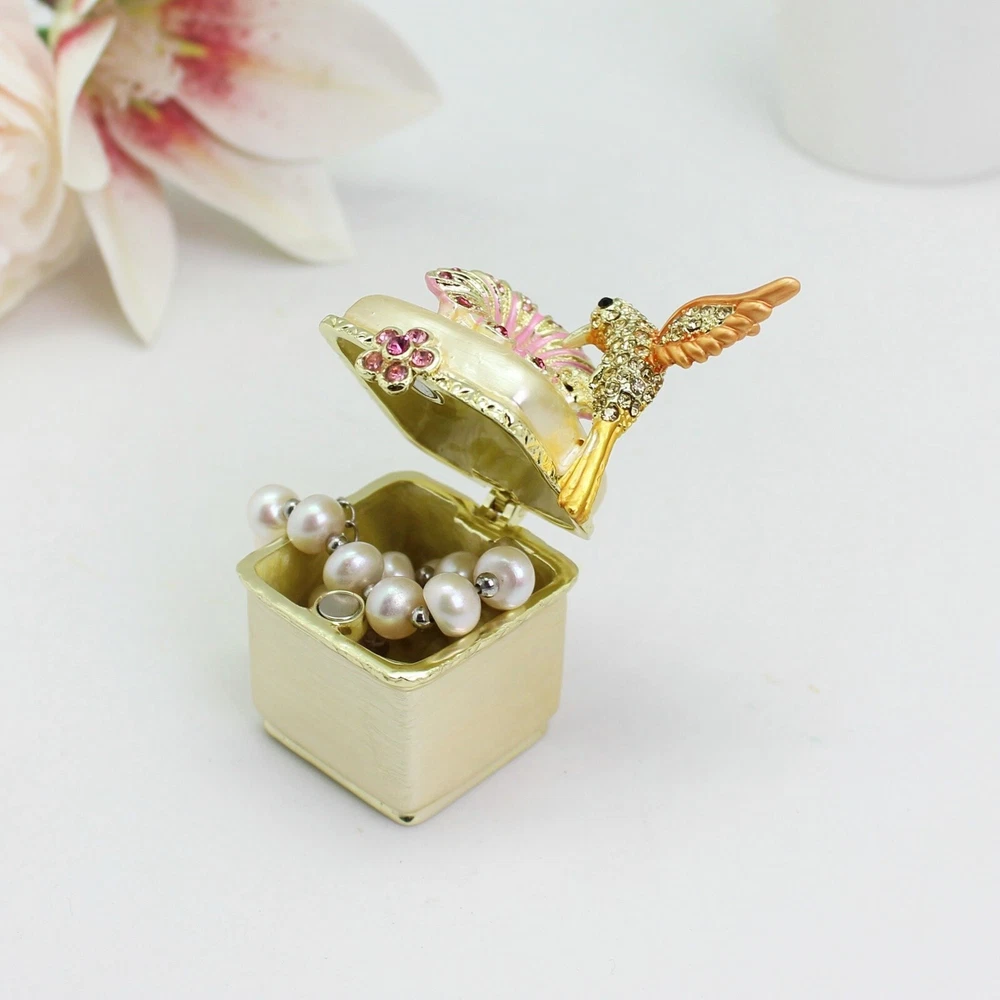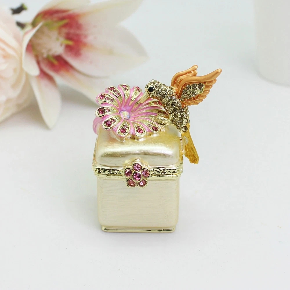 【 Materials】Pewter Enamel Made in GuangDong 【 Package】Gift Box 100% Brand New Handmade Pewter Enamel Trinket Box Handmade by masters with 20+ Years Experience Can be use for Birthday Gifts,Wedding Favor,Christmas Gifts,Home Decorative This collectible trinket box is meticulously crafted from fine pewter I t is hand enameled and then lavishly inlaid with crystals by skilled artisans. Opens on a hinge to reveal the hand painted interior Magnetic closure to keep the box shut securely , T his jewelry trinket box is made of a pewter-like alloy and finished with a high polished finish Versatile Use: Perfect as both a decorative piece and a functional trinket box I deal for storing small precious items while bringing fortune symbolism