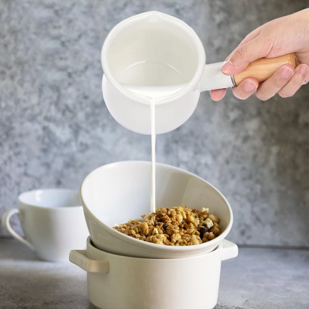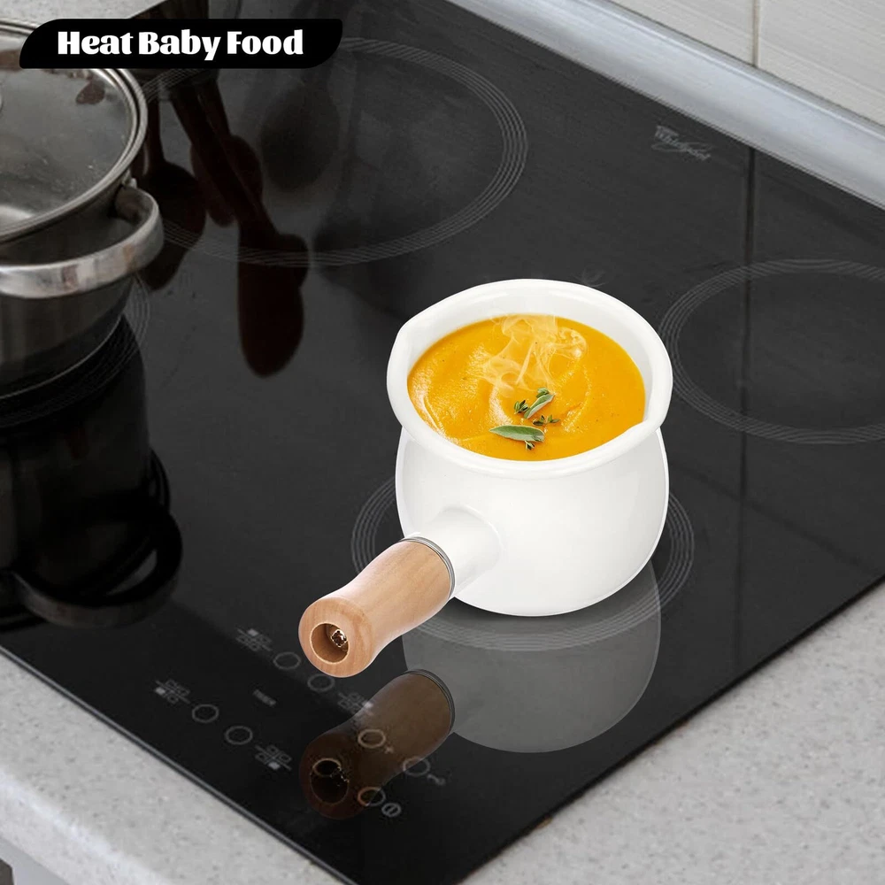 BSTKEY Enamel Milk Pan, Mini Butter Warmer Milk Pot Saucepan Small Cookware with Wooden Handle 2 Pour Spouts for Heating Milk Melting Butter Boiling Water (550ml, White) ELEGANT ENAMEL BUTTER WARMER POT - Size: 4 x 3.3 inch, Capacity: 550ml. With a flat bottom, fast heat conduction and even heating, this enameled crock pot is very easy to use. HIGH QUALITY ENAMELED COOKWARE - This milk pitcher is made of the heaviest gauge enamel, non-stick interior, sturdy and firm, easy to clean. Ceramic stove/Electric stove/Halogen stove/Induction cooker safety. THOUGHTFUL DESIGN - Wooden handle is comfortable, safe, non-slip, and protect your hands from heat. Double pour spouts design, easy to pour for right and left hand use. MULTI-FUNCTIONAL USE - This sauce pan measures is suitable for heating sauces, gravies, butter, porridge, baby food, eggs, milk or melted chocolate and other cooking. A white enamel milk pan with simple and elegant design, which is easy to match with other tableware, and adds excitement to your kitchen. CUSTOMER SUPPORT - If you have any questions, please feel free to contact us, we promise to reply you as soon as possible and provide you with a satisfactory solution.Package includes: 1x Enamel Milk Pan (Accessories are not included) SHIPPING - We offer FREE shipping on all orders! - We ship within 3 business days of payment, usually sooner - We use a selection of shipping services such as UPS, FedEx, USPS etc - We only ship to the lower 48 states, no APO/FPO addresses or PO Boxes allowed International buyers – please note: Import duties, taxes, and charges aren't included in the item price or postage cost. These charges are the buyer's responsibility. - Please check with your country's customs office to determine what these additional costs will be prior to bidding or buying. - We have confidence in our products, but if you are not fully satisfied please contact us within 30 days of purchase and you will get full refund. * Order Cancellation Policy ** You can return a product for up to 30 days from the date you purchased it. 1. The seller reserves the right to cancel the special case only due to eBay cancellation fee. 2. The decision of seller is the final. 3. The seller will respond to the cancellation request within 2 business days. Please wait for the result of cancellation. 4. In case the cancellation is not completed by some reasons, the buyer can follow the options below to get the refund. 4.1 The buyer can reject the item when it arrives. 4.2 The buyer can send the item back to the seller within 30 days If the buyer receives item (USA Shipment ONLY). The seller will provide the FREE return label to the buyer when the buyer opens " Return Item" case on eBay by using the reason as "Change my mind" ONLY. 5. When buyer has placed the order. The order will be processed and completed by automatic warehouse system within 5 minutes. In case that buyer sends the cancellation request after 5 minutes of placing the order, the request will be rejected. **Sending direct message to cancel the order is not allowed for every case.* Return Policy For the return case - If buyer would like to return the items for refund or replacement, please CONTACT SELLER to receive the free return label from seller. The refund or replacement will be processed with the tracking number of return label which is provided by seller only. The other ways of return which are not approved by seller will not be processed for the refund or replacement. CUSTOMER SERVICE - We try our best to make sure every customer is completely satisfied. - If there's a problem, feel free to message us! - We're happy to help.