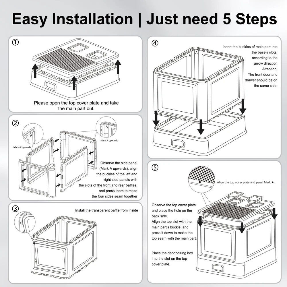 Enclosed Stainless Steel Cat Litter Box with Lid & Drawer Design for Indoor All Lifestyles Cats, Metal Covered Cat Litter Box, Baffles for Anti-Leakag, with Litter Scoop & Litter Mat Fully Odor Control:Fully-enclosed design and 2 air purification vent traps smells instantly. Hide waste and keep your home fresh – no more awkward odors in living rooms or bedrooms. Single door entry and exit, the design height is suitable for all cats, especially kittens and old cats with inconvenient legs and feet. Kittens can use it from childhood to old age! Cleaning Magic for Cat Owners: Slide-out drawer allows instant access without disassembly, saving 70% cleanup time. Dual-layer EVA litter mat blocks 99% of tracked-out sand – reclaim your floor from daily mess Built to Last Decade: Stainless steel drawer resists scratches, wipes clean effortlessly. No plastic stains or lingering smells – a dream for meticulous pet parents Big Cat Paradise: Large spacious cabin fits 12-pound chonks comfortably. Secure enclosed design boosts cats’ privacy, ending cramped accidents forever. Dimensions: height 38cm/15inch, width 41cm/16.1inch, depth 51cm/20.1inch Leakproof Armor for Wooden Homes: 35° inner guard blocks urine splashes, even for high-sprayers. Seam-sealed edges protect floors – wooden homes can finally breathe easy.