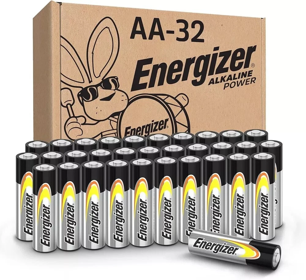 Energizer AA Batteries, Alkaline Power Double A Battery Alkaline, 32 Count 32-pack of Energizer Alkaline Power AA Batteries, Double A Alkaline Batteries Long lasting batteries provide dependable power for everyday use and emergency situations Count on these AA batteries to power a wireless mouse, game controllers, flashlights, thermometers, smart home devices, VR controllers and more Designed to protect against damaging leaks for up to two years after fully used Trust in the Energizer brand for reliable power and performance in any situation, including hurricane supplies and kits
