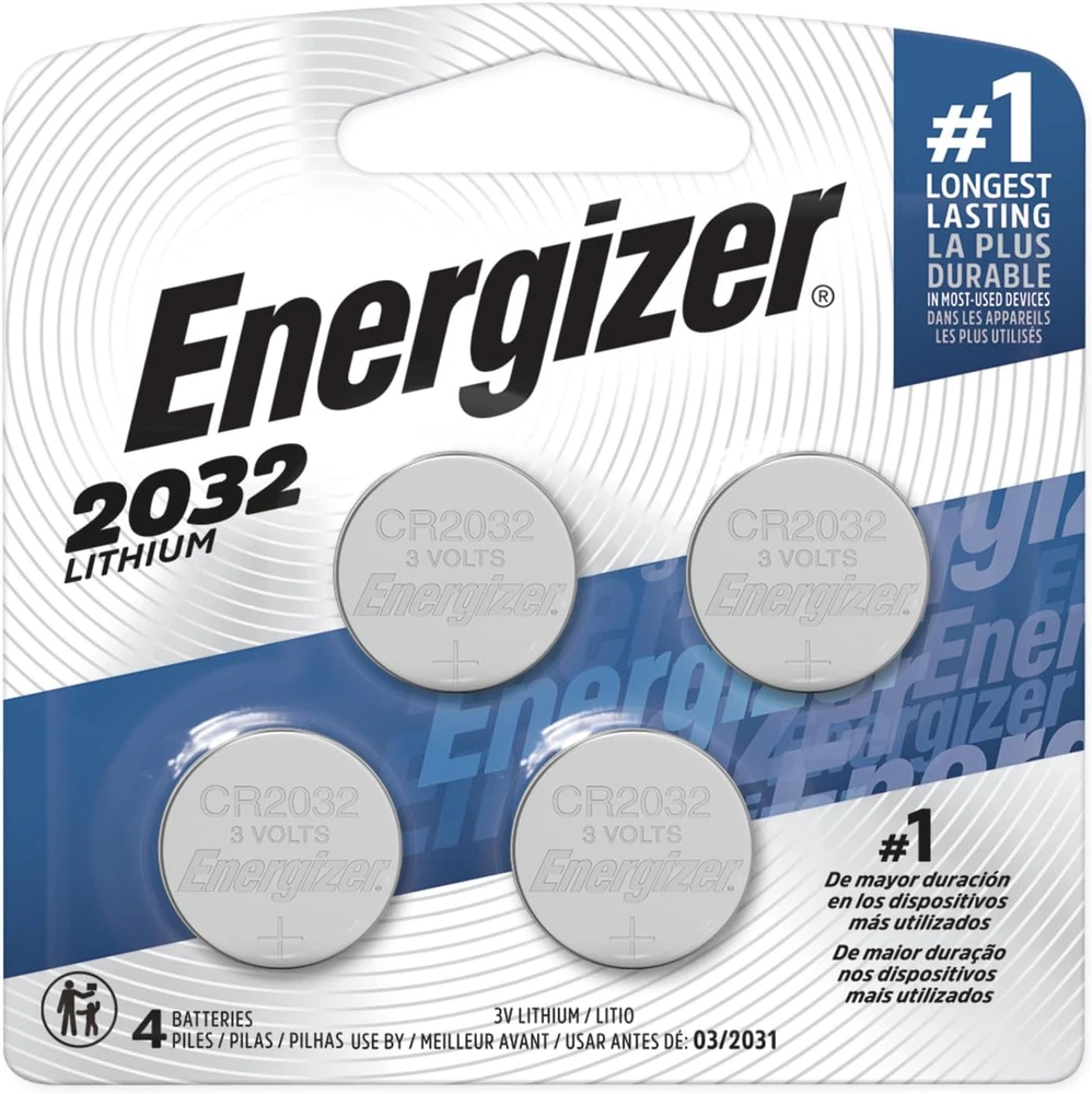 Energizer CR2032 Batteries 4 Pack, 3V Lithium Coin Batteries with Child Shield 3V LITHIUM COIN BATTERIES: One 4 pack of Energizer 2032 Batteries. Packaging may vary 3-IN-1 CHILD SHIELD: Featuring the worldâ€s first 3-in-1 Child Shield with three lines of defense: Color Alert, a bitter coating, and secure packaging (only on select packs) COLOR ALERT: Color Alert technology dyes the mouth blue seconds after contact with saliva to indicate possible ingestion BITTER COATING AND SECURE PACKAGING: Non-toxic bitter coating helps discourage ingestion, while the secure packaging is almost impossible to open without scissors WITHSTANDS EXTREME TEMPS: Performs in extreme temperatures from -22 to 140 degrees Fahrenheit for dependable power, even in the toughest conditions POWERS A VARIETY OF DEVICES: Ideal for use as remote batteries and medical device batteries; also an ideal power source for your keyless entry system, toys and games OUR LONGEST LASTING 2032 BATTERY: Our longest lasting 2032 coin cell batteries last up to 12 years in storage to provide reliable power when you need it most Thank you for viewing our Energizer CR2032 Batteries 4 Pack, 3V Lithium Coin Batteries with Child Shield.