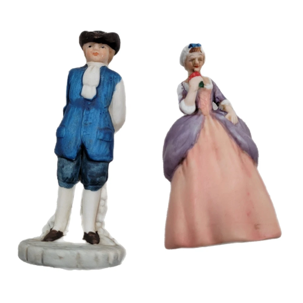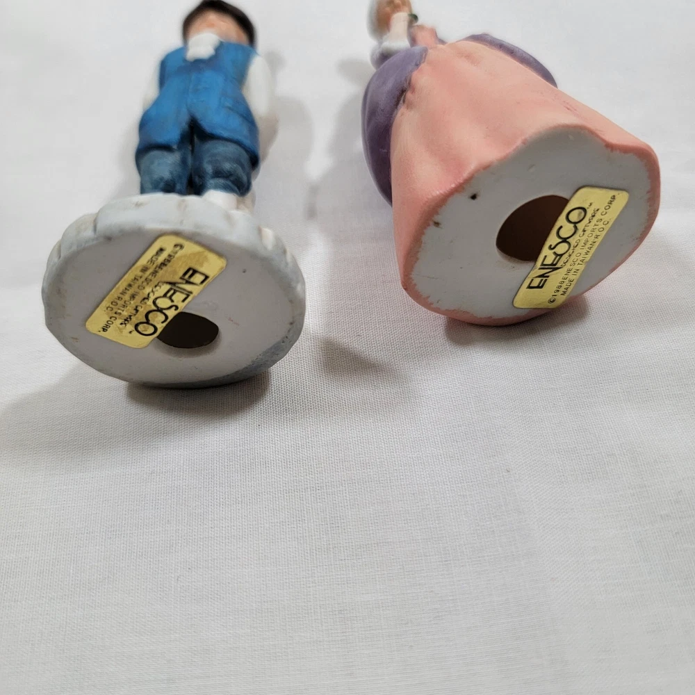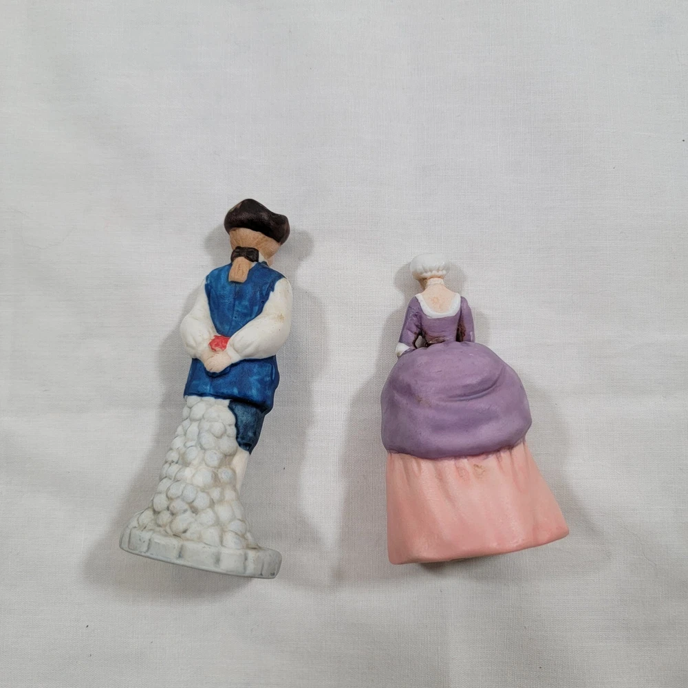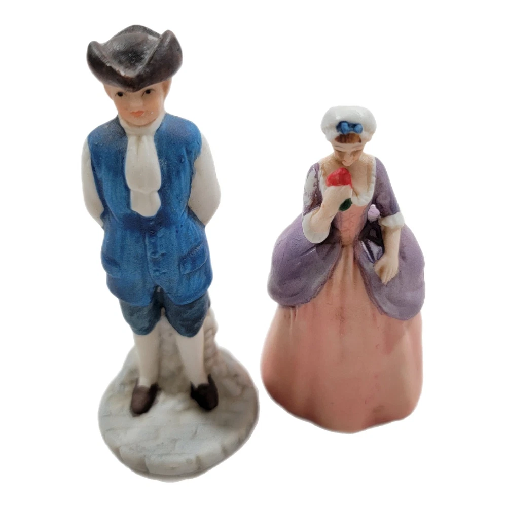 Color: Multicolor Pattern: Characters Brand: Enesco Time Period Manufactured: 1980-1989 Occasion: All Occasions Style: Colonial Theme: Williamsburg Type: Figurine Material: Porcelain Finish: Matte Character Family: Colonial Subject: Couple Collection: Enesco Country/Region of Manufacture: Taiwan Department: Adults