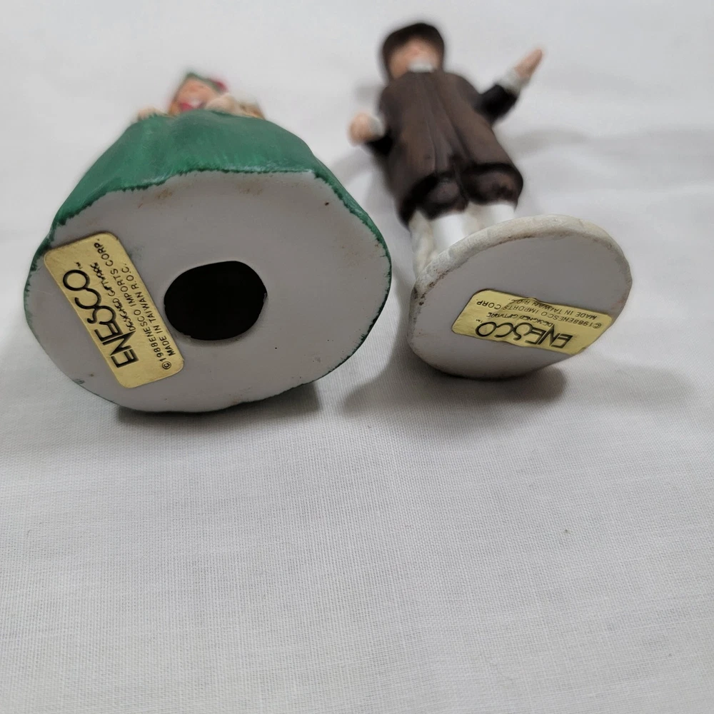This Enesco Williamsburg Village Figurines set features a charming colonial couple, a man and a woman, both beautifully crafted from porcelain material with a matte finish. The figurines come from Taiwan and are part of the Enesco collection, perfect for collectors of all occasions. The multicolor characters are dressed in colonial attire and are ideal for adding a touch of history to any decor. These figurines are perfect for adults and make a great addition to any collection. The Enesco brand is well-known for its quality and attention to detail, making this set a must-have for any collector.