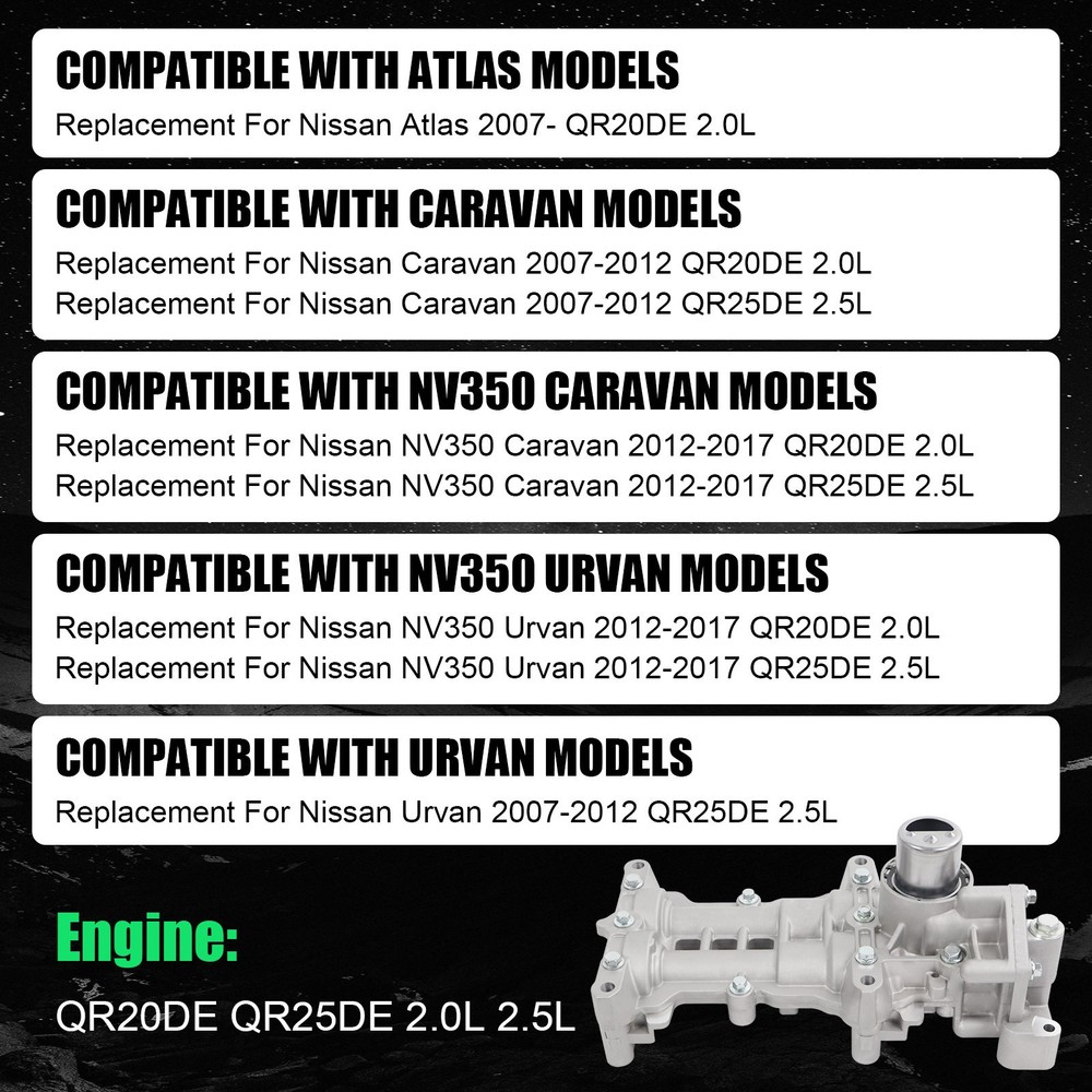 Engine Balancer Oil Pump 12410-MA00C 12410-MA00A for Nissan NV350 Urvan 2.5L L4 Item Details Applicable For : Nissan Atlas NV350 Caravan Urvan 2.0L 2.5L Engine: QR20DE QR25DE 2.0L 2.5L Nissan Atlas 2007- QR20DE 2.0L Nissan Caravan 2007-2012 QR20DE 2.0L Nissan Caravan 2007-2012 QR25DE 2.5L Nissan NV350 Caravan 2012-2017 QR20DE 2.0L Nissan NV350 Caravan 2012-2017 QR25DE 2.5L Nissan NV350 Urvan 2014-2017 QR20DE 2.0L Nissan NV350 Urvan 2014-2017 QR25DE 2.5L Nissan Urvan 2007-2012 QR25DE 2.5L Replaces OE Part Number: 12410-MA00C, 12410 MA00C, 12410MA00C 12410-MA00A, 12410 MA00A, 12410MA00A 12410-MA00D, 12410 MA00D, 12410MA00D Package included : as picture ITEM SKU. : S527-12410-M7 1. Constructed from high quality materials for a long service life,Corrosion Resistant 2. Direct replacement for a proper fit every time, Instruction is not included. 3. It is recommended that professional personnel install it Note: Please check your original part number. This is the best way to confirm the fitment. Aftermarket Brand. 1 Year Parts Warranty Top Quality + Quick Delivery Please ensure this item fits your car, Professional installation is recommended Even if your car is shown in the eBay compatibility guide you must read the description and any notes carefully. Please double check that the photo match the product you are replacing We ship our items to USA only(Does NOT include Hawaii,Alaska or Puerto Rico, PO Boxes/APO's ) We have multiple warehouses in US,and will choose the nearest one for shipping,according to your address and our inventory Payment Delivery details Return Warranty Contact us Payment We accept payment by paypal. Delivery details We send our products within 3 business days. Return Buyers pay the return shipping cost for exchange or refund. Sellers pay the return shipping cost for quality problem. For replacements, please notice us within 5 days after you receiving the item. Item must be returned in original packing same as reached Any installation or other fees are non-refundable. Warranty This item has 1 year warranty. In the event the of the item fail due to manufacturing defects during intended use, we will replace the part by free. We only warranty cost of item parts. Any installation or other fees are non-refundable. Note: Any modifying the item of any kind without contacting us will void any and all warranty coverage for this item. Please contact us before modifying the part so that we have the opportunity to correct the situation. Contact us If you have any question, please contact me with ebay message. Brand speedmotor2012 Type Oil Pump Manufacturer Part Number 12410-MA00C, 12410-MA00A OE/OEM Part Number 12410-MA00C, 12410 MA00C, 12410MA00C, 12410-MA00A, 12410 MA00A, 12410MA00A, 12410-MA00D, 12410 MA00D, 12410MA00D Material Aluminum Manufacturer Warranty 1 Year Interchange Part Number 12410-MA00C, 12410 MA00C, 12410MA00C, 12410-MA00A, 12410 MA00A, 12410MA00A, 12410-MA00D, 12410 MA00D, 12410MA00D Superseded Part Number 12410-MA00C, 12410 MA00C, 12410MA00C, 12410-MA00A, 12410 MA00A, 12410MA00A, 12410-MA00D, 12410 MA00D, 12410MA00D Fitment Type Direct Replacement Compatible Makes Nissan Engine QR20DE QR25DE 2.0L 2.5L OE Number 12410-MA00C, 12410 MA00C, 12410MA00C, 12410-MA00A, 12410 MA00A, 12410MA00A, 12410-MA00D, 12410 MA00D, 12410MA00D Country of Origin China