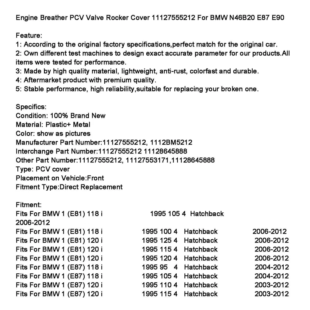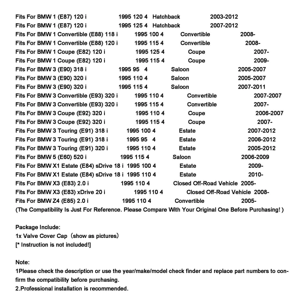 Crankshaft Position Sensor 4327230 4383999 for Cummins Engine U4 12.64 USD Free shipping Tire Pressure Monitoring Sensor 6798872 For BMW X1X3 Alpina MiNi Cooper 2014- U4 17.64 USD Free shipping TPMS Tire Pressure Sensor 52933-3N100 For Kia Ceed Hyundai Accent Genesis U4 17.64 USD Free shipping Manifold Absolute Pressure Sensor for Cummins Diesel ISX Models 4921473 U4 21.64 USD Free shipping Power Window Switch Front Left For Mercedes-Benz W204 C300 E350 2049055302 U4 27.99 USD Free shipping Idle Air Control Valve 93744675 For Chevy Aveo 2004-2006 Daewoo Lanos 1999-02 U4 16.65 USD Free shipping SAFE & SECURE SHOPPING 100% SATISFACTION GUARANTEED FAST SHIPPING Store Categories Store Categories Other eBay Motors Grille You may also like Front Center Dash Window Switch Bezel Panel 1RP74DX9AC fit Jeep Wrangler 2011-19 16.65 USD Free shipping Gas Fuel Tank Lid Door Lid Flap Cover Cap 6R0809857 For VW Polo 2011-2018 2019 24.65 USD Free shipping TPMS Tire Pressure Sensor 52933-3N100 For Kia Ceed Hyundai Accent Genesis U4 17.64 USD Free shipping Connecting Rod SH01-11-210 Fit Mazda SHY1 2.2 Diesel 6 CX-5 Saloon Estate 60.99 USD Free shipping Idle Air Control Valve 93744675 For Chevy Aveo 2004-2006 Daewoo Lanos 1999-02 U4 16.65 USD Free shipping Tire Pressure Monitoring Sensor 6798872 For BMW X1X3 Alpina MiNi Cooper 2014- U4 17.64 USD Free shipping Engine Breather PCV Valve Rocker Cover 11127555212 For BMW N46B20 E87 E90 D1 U4 Product Description Engine Breather PCV Valve Rocker Cover 11127555212 For BMW N46B20 E87 E90 Feature: 1: According to the original factory specifications,perfect match for the original car. 2: Own different test machines to design exact accurate parameter for our products.All items were tested for performance. 3: Made by high quality material, lightweight, anti-rust, colorfast and durable. 4: Aftermarket product with premium quality. 5: Stable performance, high reliability,suitable for replacing your broken one. Specifics: Condition: 100% Brand New Material: Plastic+ Metal Color: show as pictures Manufacturer Part Number:11127555212, 1112BM5212 Interchange Part Number:11127555212 11128645888 Other Part Number:11127555212, 11127553171,11128645888 Type: PCV cover Placement on Vehicle:Front Fitment Type:Direct Replacement Fitment: Fits For BMW 1 (E81) 118 i 1995 105 4 Hatchback 2006-2012 Fits For BMW 1 (E81) 118 i 1995 100 4 Hatchback 2006-2012 Fits For BMW 1 (E81) 120 i 1995 125 4 Hatchback 2006-2012 Fits For BMW 1 (E81) 120 i 1995 115 4 Hatchback 2006-2012 Fits For BMW 1 (E81) 120 i 1995 120 4 Hatchback 2006-2012 Fits For BMW 1 (E87) 118 i 1995 95 4 Hatchback 2004-2012 Fits For BMW 1 (E87) 118 i 1995 105 4 Hatchback 2004-2012 Fits For BMW 1 (E87) 120 i 1995 110 4 Hatchback 2003-2012 Fits For BMW 1 (E87) 120 i 1995 115 4 Hatchback 2003-2012 Fits For BMW 1 (E87) 120 i 1995 120 4 Hatchback 2003-2012 Fits For BMW 1 (E87) 120 i 1995 125 4 Hatchback 2007-2012 Fits For BMW 1 Convertible (E88) 118 i 1995 100 4 Convertible 2008- Fits For BMW 1 Convertible (E88) 120 i 1995 115 4 Convertible 2008- Fits For BMW 1 Coupe (E82) 120 i 1995 125 4 Coupe 2007- Fits For BMW 1 Coupe (E82) 120 i 1995 115 4 Coupe 2009- Fits For BMW 3 (E90) 318 i 1995 95 4 Saloon 2005-2007 Fits For BMW 3 (E90) 320 i 1995 110 4 Saloon 2005-2007 Fits For BMW 3 (E90) 320 i 1995 115 4 Saloon 2007-2011 Fits For BMW 3 Convertible (E93) 320 i 1995 110 4 Convertible 2007-2007 Fits For BMW 3 Convertible (E93) 320 i 1995 115 4 Convertible 2007- Fits For BMW 3 Coupe (E92) 320 i 1995 110 4 Coupe 2006-2007 Fits For BMW 3 Coupe (E92) 320 i 1995 115 4 Coupe 2007- Fits For BMW 3 Touring (E91) 318 i 1995 100 4 Estate 2007-2012 Fits For BMW 3 Touring (E91) 318 i 1995 95 4 Estate 2006-2012 Fits For BMW 3 Touring (E91) 320 i 1995 110 4 Estate 2005-2012 Fits For BMW 5 (E60) 520 i 1995 115 4 Saloon 2006-2009 Fits For BMW X1 Estate (E84) sDrive 18 i 1995 100 4 Estate 2009- Fits For BMW X1 Estate (E84) sDrive 18 i 1995 110 4 Estate 2010- Fits For BMW X3 (E83) 2.0 i 1995 110 4 Closed Off-Road Vehicle 2005- Fits For BMW X3 (E83) xDrive 20 i 1995 110 4 Closed Off-Road Vehicle 2008- Fits For BMW Z4 (E85) 2.0 i 1995 110 4 Convertible 2005- (The Compatibility Is Just For Reference. Please Compare With Your Original One Before Purchasing! ) Package Include: 1x Valve Cover Cap(show as pictures) [* Instruction is not included!] Note: 1Please check the description or use the year/make/model check finder and replace part numbers to confirm the compatibility before purchasing. 2.Professional installation is recommended. About Us Shipping Terms Contact Us About Us Bruce & Shark is a company Focus on Motorcycle parts more than 11 years. The design inspiration comes from the awe of the vast sea and worship of the fighting sharks, therefore Bruce & Shark takes a shark as brand logo. Since its inception, we have always put the "customer first" and "top quality" as our principle. We specialized in selling Motorcycle parts and providing customers with various types of high-quality products. Our brand Bruce & Shark has enjoyed good reputation in America, Europe, Japan, Canada and Africa, covering more than 30 countries. Our vision is to deliver high-quality Motorcycle parts products and sincere services to the world. Our main products are motorcycle mounted, fuel pump, stator, windshield, Seat Cover, motorcycle fairing. Welcome to our shop to choose products that are worth more for your Motorcycle! Please Add me to your list of favorite sellers and visit often. Thank you for your business. Shipping Shipping Terms International Buyers – Please Note: 1. Import duties, taxes and charges are not included in the item price or shipping charges. These charges are the buyer’s responsibility. 2. Please check with your country’s customs office to determine what these additional costs will be prior to bidding/buying. 3.Buyers' Information: We strive our best to provide you the most reliable, affordable way of shipping service. But sometimes international delivery