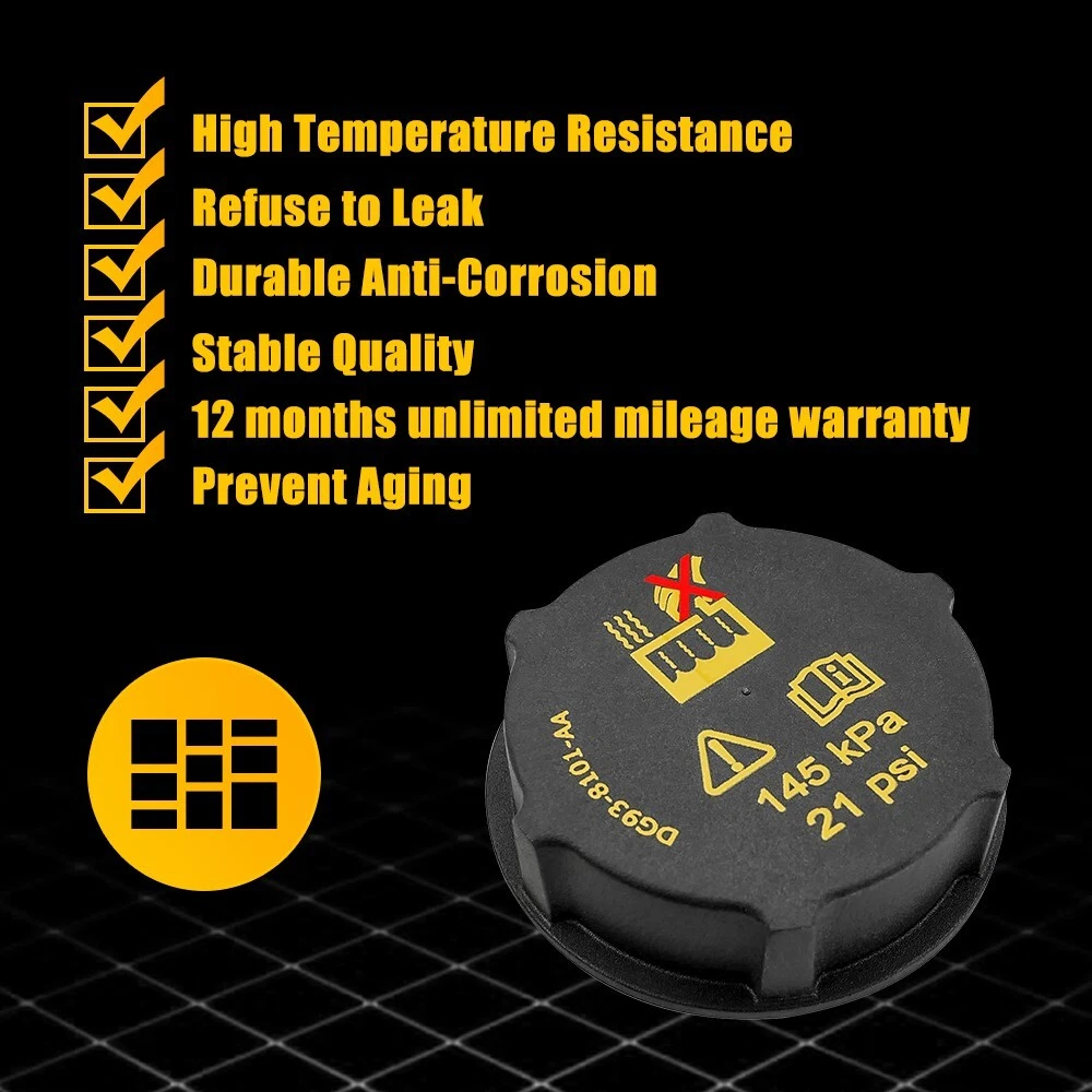 Feature: *High quality material Made of superior plastic material without rust,corrosion,stripping to ensure its high durability . *Direct replacement Direct replacement from stock application. Drillings and cuttings are not requried. *Perfect fit Manufactured according to originals for a perfect match with your car. *All tested before shipment All products were tested for performance and to ensure the accurate parameter for your vehicle.' *Warm notice Please double-check the part number and models in the description to guarantee it fits your vehicle before ordering. Specification: Engine Coolant Radiator Reservoir Tank Cap for Ford Transit 150 250 2015-2021 Feature: *High quality material Made of superior plastic material without rust,corrosion,stripping to ensure its high durability . *Direct replacement Direct replacement from stock application. Drillings and cuttings are not requried. *Perfect fit Manufactured according to originals for a perfect match with your car. *All tested before shipment All products were tested for performance and to ensure the accurate parameter for your vehicle.' *Warm notice Please double-check the part number and models in the description to guarantee it fits your vehicle before ordering. Specification: OE:DG93-8101-AA, 31549, 1224233, 1301104, 30680002, 306800020, 31368311, 3M5H8100AC, 3M5H8100AD, BE8Z8100A, DG938101AA, DG9Z8100A, J9C1407, LF5015205A, LR000243 Material:Plastic Fits for: for Ford C-Max 2013-2018 for Ford Ecosport 2018-2021 for Ford Edge 2015-2021 for Ford Escape 2013-2021 for Ford Expedition 2018-2021 for Ford Explorer 2020-2021 for Ford F-150 2015-2021 for Ford Fiesta 2011-2019 for Ford Focus 2012-2018 for Ford Fusion 2013-2020 for Ford Ikon 2011-2015 for Ford Lobo 2015-2021 for Ford for Mustang 2015-2021 for Ford for Ranger 2019-2021 for Ford Transit 2016-2021 for Ford Transit 150 2015-2021 for Ford Transit 250 2015-2021 for Ford Transit 350 2015-2021 for Ford Transit Connect 2014-2021 for Volvo C30 2008-2013 for Volvo C70 2008-2013 for Volvo S40 2004-2011 for Volvo S60 2011-2021 for Volvo S80 2007-2016 for Volvo S90 2018-2021 for Volvo V50 2005-2011 for Volvo V60 2014-2021 for Volvo V70 2008-2010 for Volvo V90 2018-2021 for Volvo XC40 2019-2021 for Volvo XC60 2010-2021 for Volvo XC70 2008-2016 for Volvo XC90 2012-2021 for Land Rover Discovery Sport 2015-2021 for Land Rover LR2 2008-2015 for Land Rover Range Rover Evoque 2012-2020 for Lincoln Corsair 2020-2021 for Lincoln MKC 2015-2019 for Lincoln MKX 2016-2018 for Lincoln MKZ 2013-2020 for Lincoln Navigator 2019-2021 for Mazda 3 2004-2013 for Jaguar E-Pace 2018-2020 Package include: 1Pc Engine Coolant Reservoir Cap What makes you choose our products? 1. Rapid logistics and response We will dispatch your order within 24 hours since your payment to guarantee that you can receive your order immediately. 2. High quality The raw materials are strictly inspected high-quality ones. In addition, our inspectors will inspect all the products again before they are dispatched to guarantee all customers receive good products. 3. Guaranteed after sales service We provide quality guarantee services ranging from 6 months to 10 years. Any customer can contact us for any problem during the period. We provide after sales services around the clock (7 x 24h). 4. High cost performance Providing products with high cost performance is our lasting objective. Our products may not be the cheapest or expensive ones, but they must be the ones with the optimal cost performance. In general,you can enjoy reliable quality, speedy service along with competitive price. Your satisfaction is my goal.My customer service is not only the guarantee of money,but also the guarantee for your time and expectation. Item Specifics Brand AUXITO Performance Part Yes Brand AUXITO Manufacturer Part Number DG93-8101-AA, 31549, 1224233, 1301104, 30680002, 306800020 Material Plastic Product Name Engine Coolant Reservoir Cap Net Weight 51g Shell Color Black Dimension 6.2x3.8cm / 2.44"x1.50"(D*H) Packing List Engine Coolant Reservoir Cap*1 Payment We can accept payment by credit, debit, and gift cards; Apple Pay, Google Pay, PayPal, and PayPal Credit. Shipping 1. All items will be shipped in 24 hours after receiving your payment . 2. We ship this item to US only via USPS first class mail. It usually takes 3-5 working days to deliver. Returns 1. We offer 60 days return policy. 2. Please contact us within 60 days from the date you receive your package if you have any questions with the products . 3. Refund will be sent after we got your returned package. 4. All returned items should be in the original packaging with tracking number. Contact Us We work from Monday - Saturday 9:00AM - 6:00PM PST, but we will reply you once we get your message .There will be some delay on response if you send message or E-Mail on Sunday. DESCRIPTION PAYMENT SHIPPING RETURN POLICY CONTACT US Hot item AUXITO 3157 3156 LED Flashing Brake Stop Stobe Tail Light Bulb Blinker Bulb 2F23 USD 12.91 AUXITO 3157 4157 Amber LED Turn Signal Side Marker Indicator Corner Light 2F23 USD 12.91 Help & Info Payment Policy Shipping Policy Return Policy FAQ About Us Engine Coolant Radiator Reservoir Tank Cap for Ford Transit 150 250 2015-2021 Feature: *High quality material Made of superior plastic material without rust,corrosion,stripping to ensure its high durability . *Direct replacement Direct replacement from stock application. Drillings and cuttings are not requried. *Perfect fit Manufactured according to originals for a perfect match with your car. *All tested before shipment All products were tested for performance and to ensure the accurate parameter for your vehicle.' *Warm notice Please double-check the part number and models in the description to guarantee it fits your vehicle before ordering. Specification: OE:DG93-8101-AA, 31549, 1224233, 1301104, 30680002, 306800020, 31368311, 3M5H8100AC, 3M5H8100AD, BE8Z8100A, DG938101AA, DG9Z8100A, J9C1407, LF5015205A, LR000243 Mater