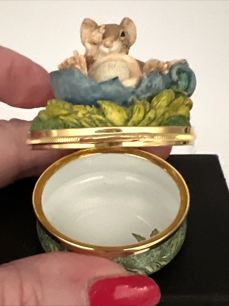 English Crummles & Co Hand Painted Trinket Box with Mouse in Nut Leaves. I will pack with care and get this lovely box to you ASAP Thanks for looking !