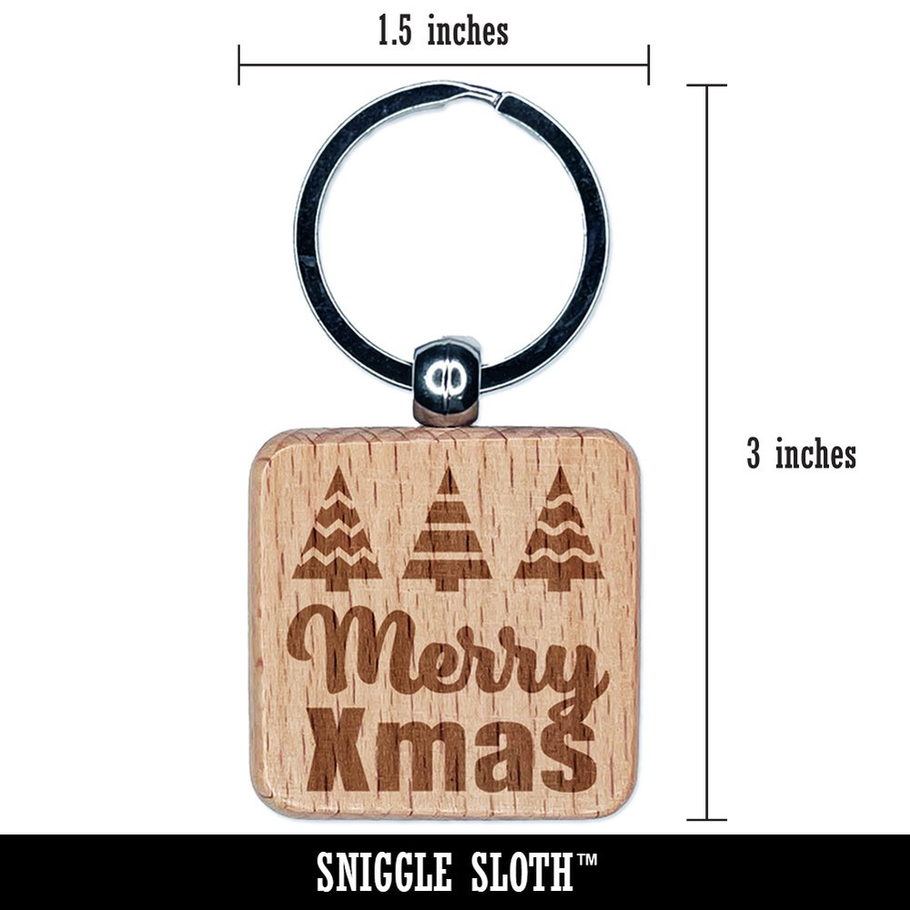 Retro Mid Century Square Engraved Wood Keychain Charm Tag