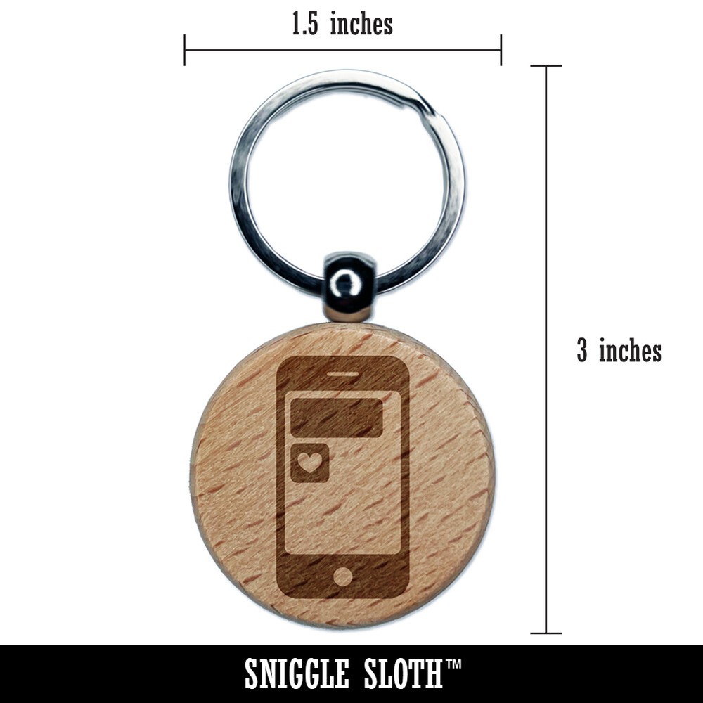 Mobile Tablet Phone Engraved Wood Round Keychain Tag Charm