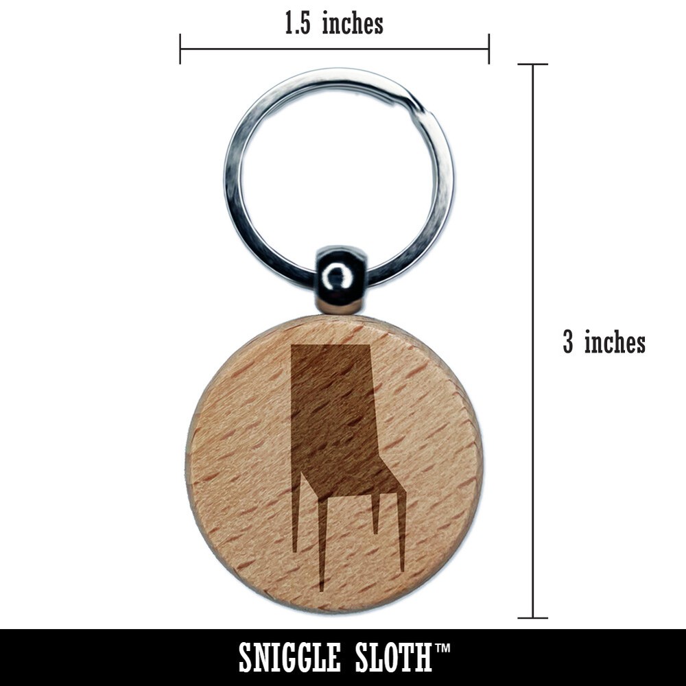 Engraved Wooden Chair Silhouette Round Keychain Charm Tag