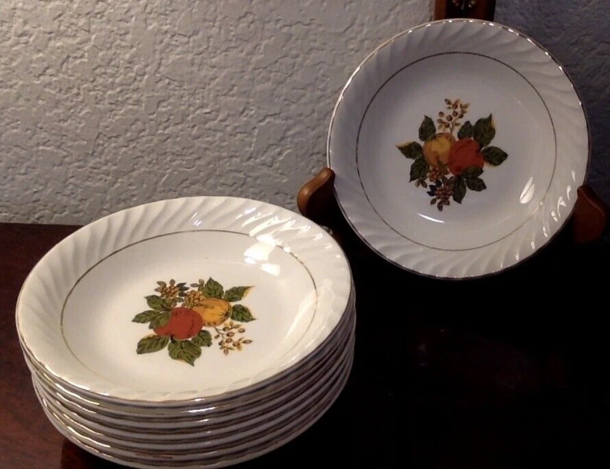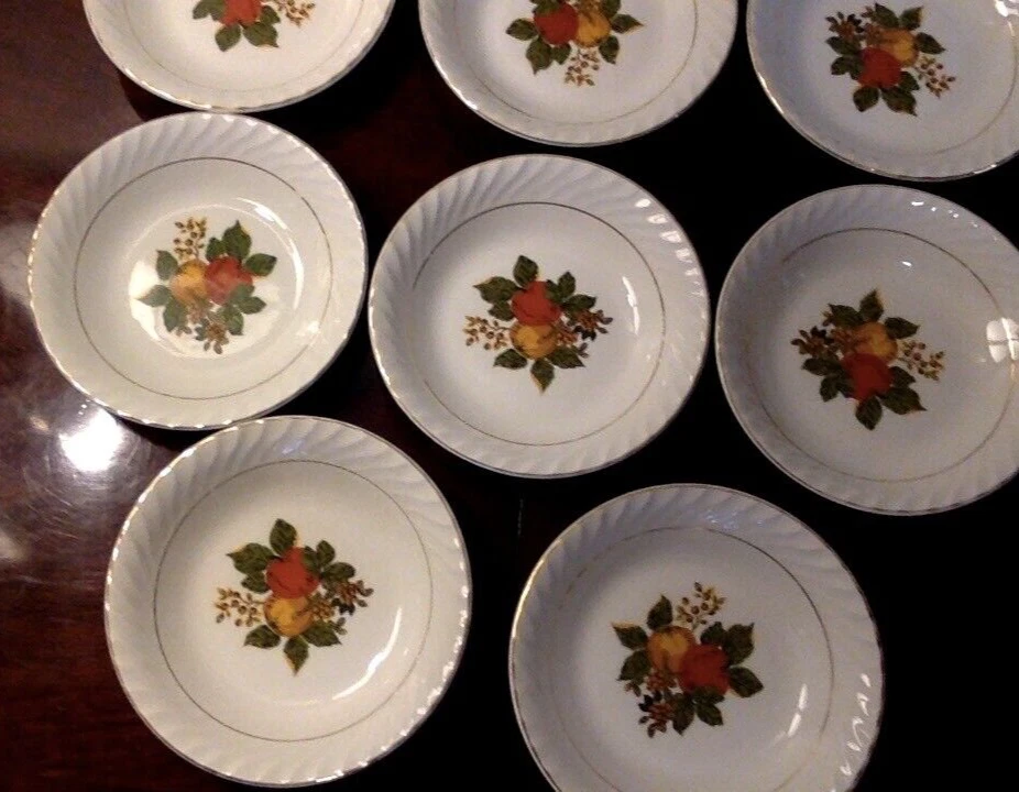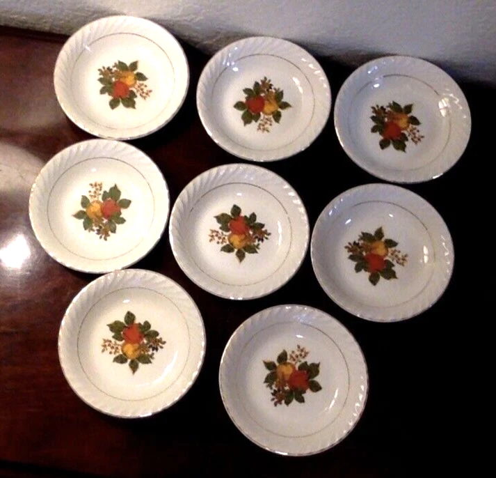 SET of 8 Enoch Wedgwood dessert or berry bowls. Excellent used condition with bright gilding on bowl edges, NICE set of 8. Probably dates to about the 1960s. Ships via UPS ground, carefully boxed. Thanks for looking, and check out my eBay store for more antique and vintage pottery and dishes.