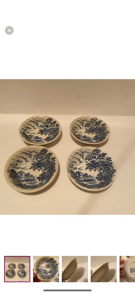 VINTAGE WEDGEWOOD ENOCH COUNTRYSIDE BERRY BOWLS — SET OF 4 What a beautiful classic set of printed berry bowls that seems to work with anything and everything you already own! Beautiful on any table, in any season, for any occasion, grand or small. By Turnstal Ltd. Made in England. Small chip on under rim of 1 bowl. Does not take away from beauty of bowl. each bowl measures approximately 5 1/4” wide x 1.75” deep