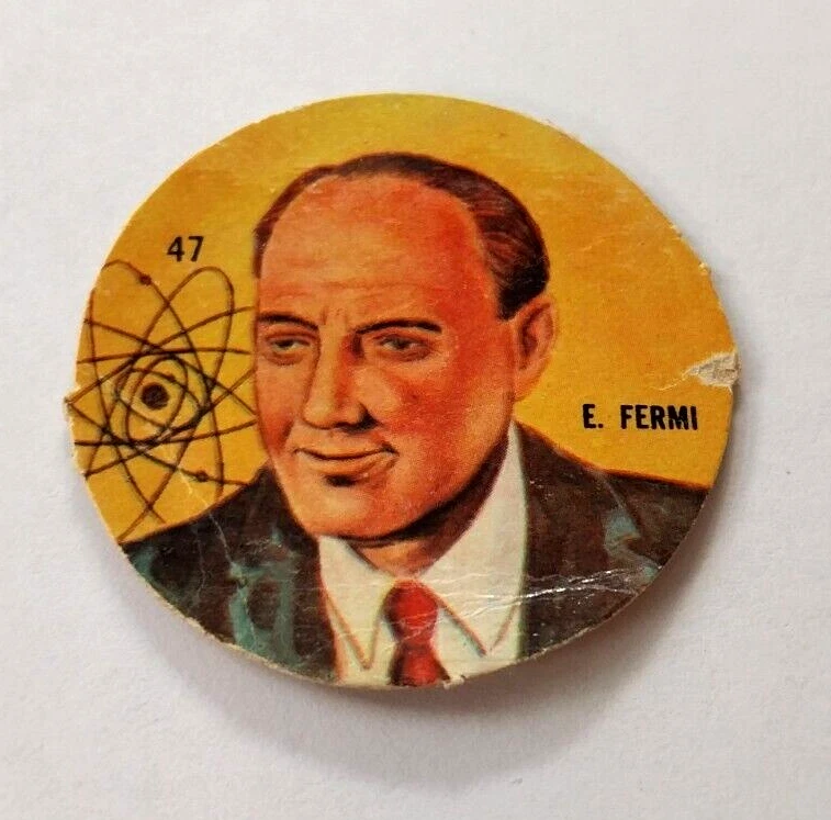 Please note: In order to be competitive and keep low shipping costs all orders under $25 will be shipped as unregistered / untracked international letter- 1966 Figuritas Crack-Campeón Argentina Historical Series Card Disc Pog #47- Enrico Fermi Creator of Nuclear Reactor. Super Rare and hard to find vintage card. Size approx: 40 millimeters/diameter. Cardboard material. In EX-NM condition, unstuck from album with some light creases, details and signs of wear, as pictured. Thank you for looking! Please visit my store for similar items!! BUENOS AIRES VINTAGE Actual pictures. Nice condition All items are shipped within 24 hours of payment. Registered mail with tracking number included! SAVE MONEY! WE DO COMBINED SHIPPINGS, PLEASE ASK! Ship worldwide from Buenos Aires, Argentina Protected and safe bubble wrapped package / envelope Buy with confidence! You may find many other collectibles in my store. If you got any question about this or another item, please feel free to contact me! AIR MAIL REGISTERED INSURED to LatinAmerica /USA Europe/Asia/Oceania (Service provided by Correo Argentino. Delivery takes from 12-25 days ) International Buyers Please Note: Import duties, taxes and charges are not included in the item price or shipping charges. These charges are the buyer's responsibility. We can't guarantee the transit time; sometimes the package may be delayed due to countries customs, transit stations, holiday, weather, strikes or other objective reasons, particularly during shipping peak periods. Non-Payment bidder / buyer will be reported to Ebay. Any doubt / question please contact us. Thank you for visit! IF YOU HAVE ANY ISSUES REGARDING THIS TRANSACTION WE ARE WILLING TO SOLVE ANY PROBLEM WITH OUR CUSTOMERS. PLEASE CONTACT US BEFORE LEAVING NEGATIVE FEEDBACK.