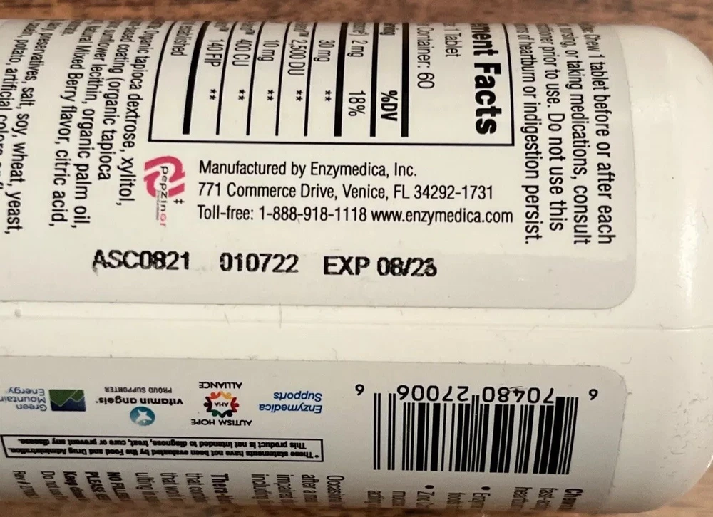 Enzymedica Acid Soothe Chewable Berry 60 Capsules, Digestive Support, Vegan. Exp 8/23